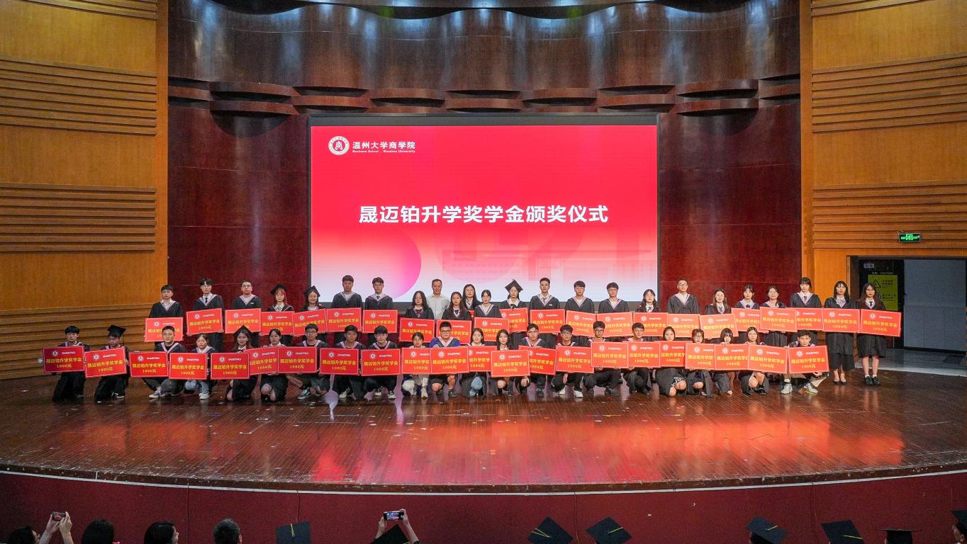 “晟迈铂升学奖学金”由莫欣校友在2020年12月捐资25万元设立,奖学金以其公司命名,旨在鼓励商院学子努力提升自我,升学深造。截止目前,2022年我们有46位学子成功升学并获得晟迈铂升学奖学金,其中6人考取了温州大学的硕士研究生。