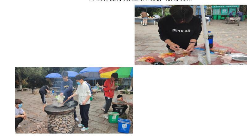 下午的实践训练中,同学们分工配合,积极地参与了野外生火、烹饪美食、美味分享,垃圾分类、场地整理等不同的劳动实践过程,不仅学会了生活技能也培养了环保意识,还给我们展现了当代大学生团结一心的精神!