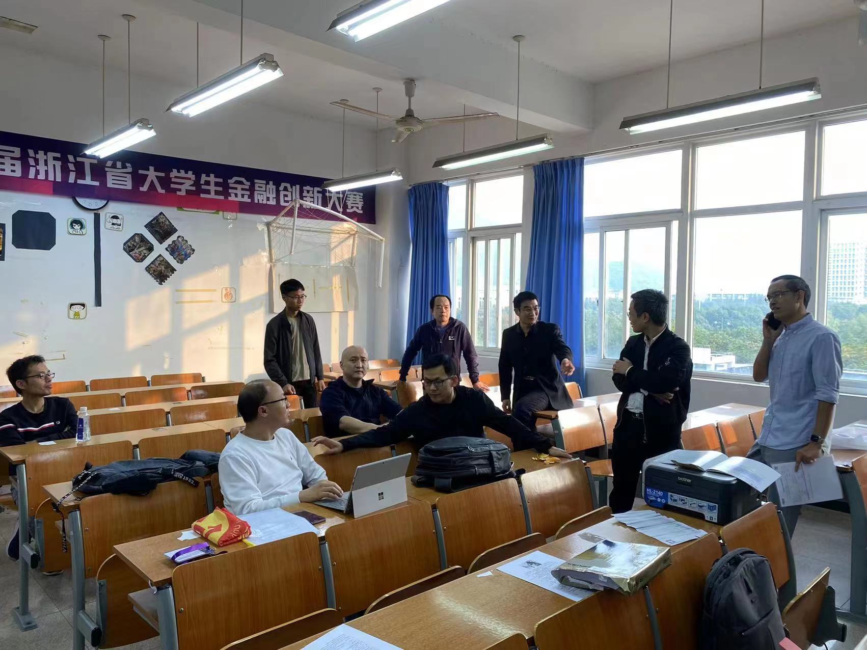 教工第一支部(金融)的老师们也到现场工作,就11月27日决赛各个环节进行了检查与推演。随后各位老师在竞赛办公室重点讨论了决赛中如何做到与评委测试设备,但又确保不让评委提前知道具体考场,充分保证决赛的公平、公正与公开。