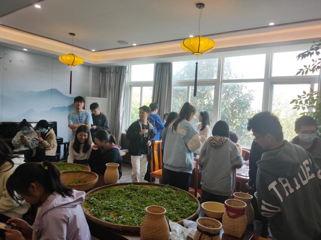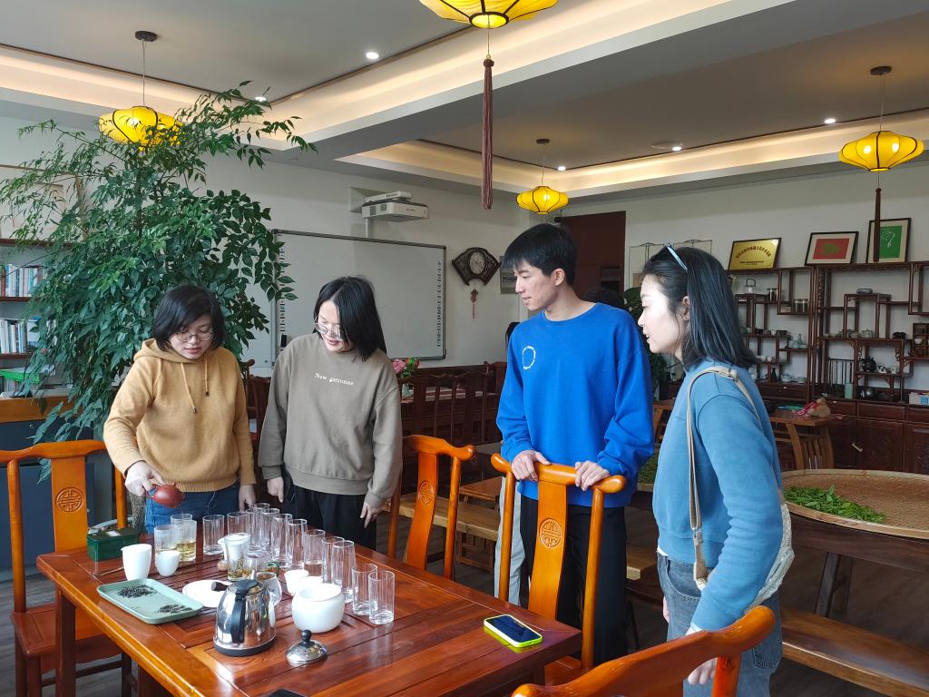 的“茶香国际”茶园和茶室进行采茶、炒茶实践活动,沉浸式体验、了解茶文化。温州大学国际教育银河赌场