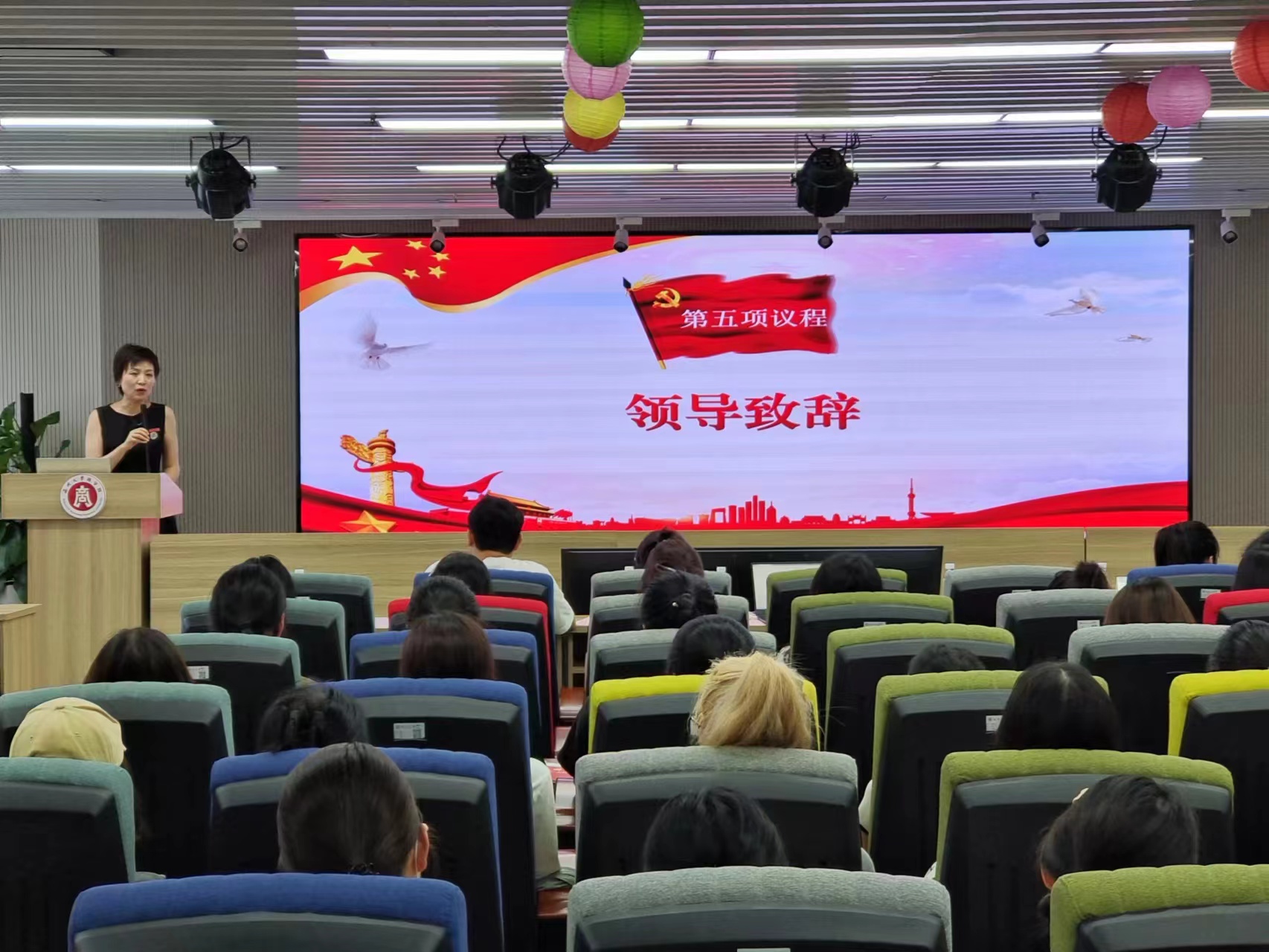 党委书记李密致辞。她殷切嘱托毕业生党员们无论今后在何时何地,都要时刻牢记自己共产党员的身份,始终发光发热;同时,她还结合习近平总书记关于宗教工作的重要论述以及关于廉洁的重要思想,提醒毕业生党员们要严格遵守党的纪律,要经受住社会的考验,时刻保持清廉公正,并祝贺各位毕业生党员顺利完成学业。