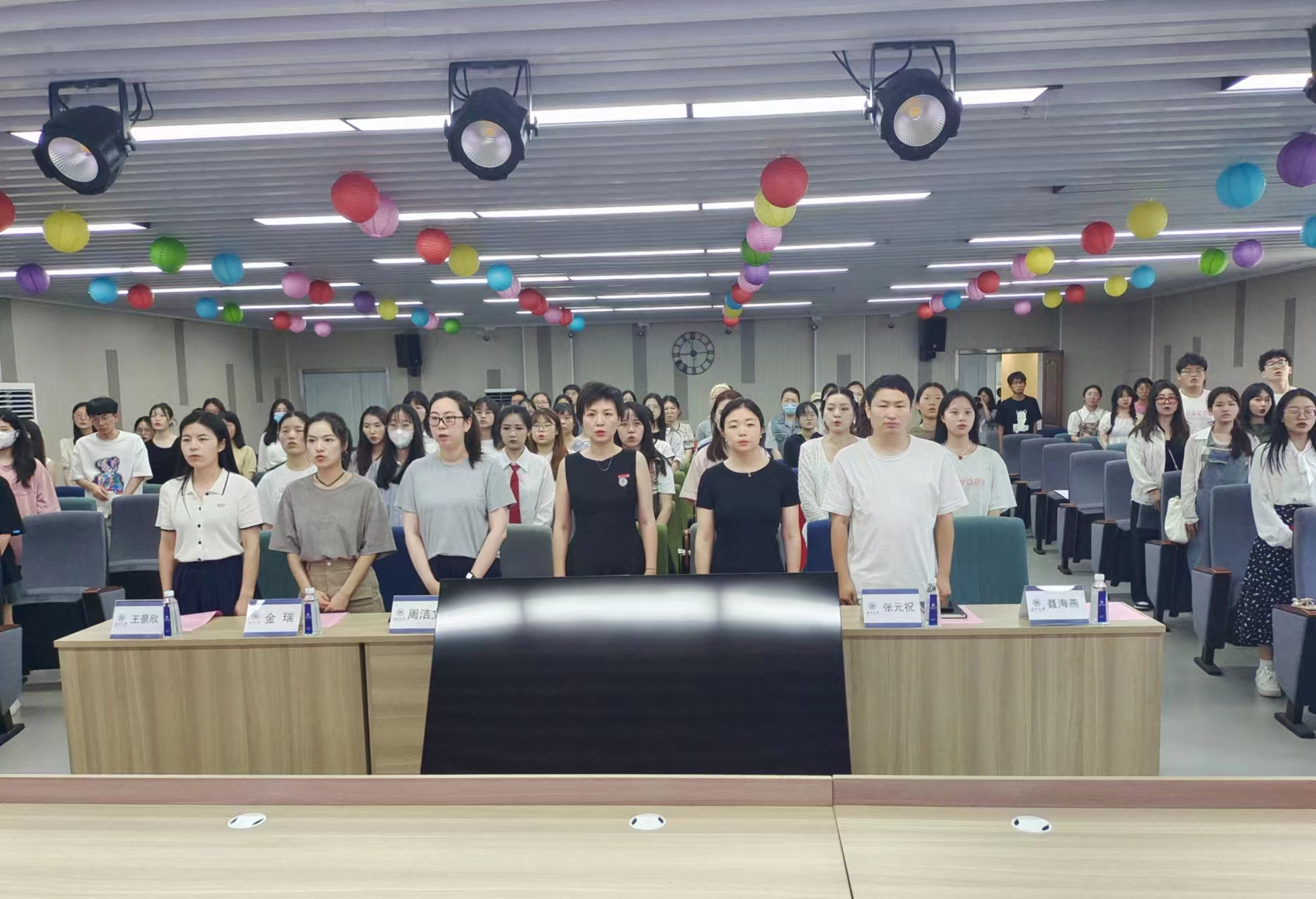 在庄严的国歌声中,大会拉开了序幕。
