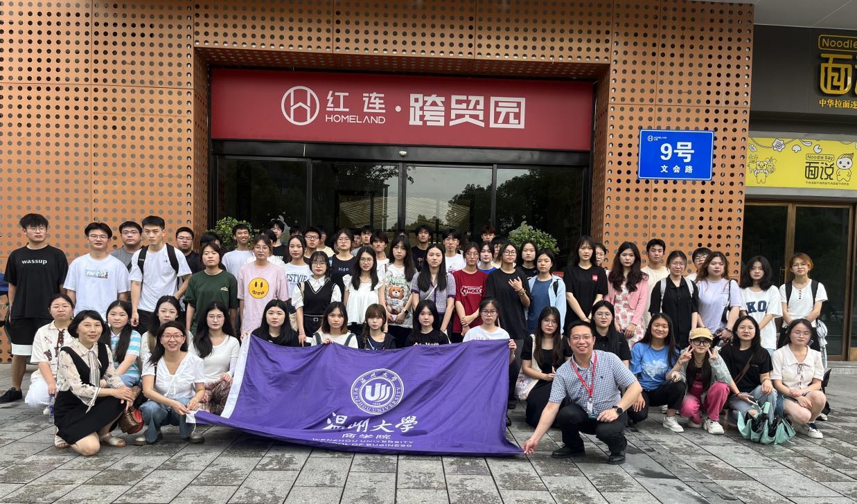 2022级国际经济与贸易本科专业学生于2023年6月20日在红连跨贸园展开实地考察活动,在红连跨贸园常务副总包攀斌先生的带领下,同学们深入考察了这家浙南新型数字经济产业园,以及共同探讨了这一当前外贸新业态对温州对外贸易的影响。