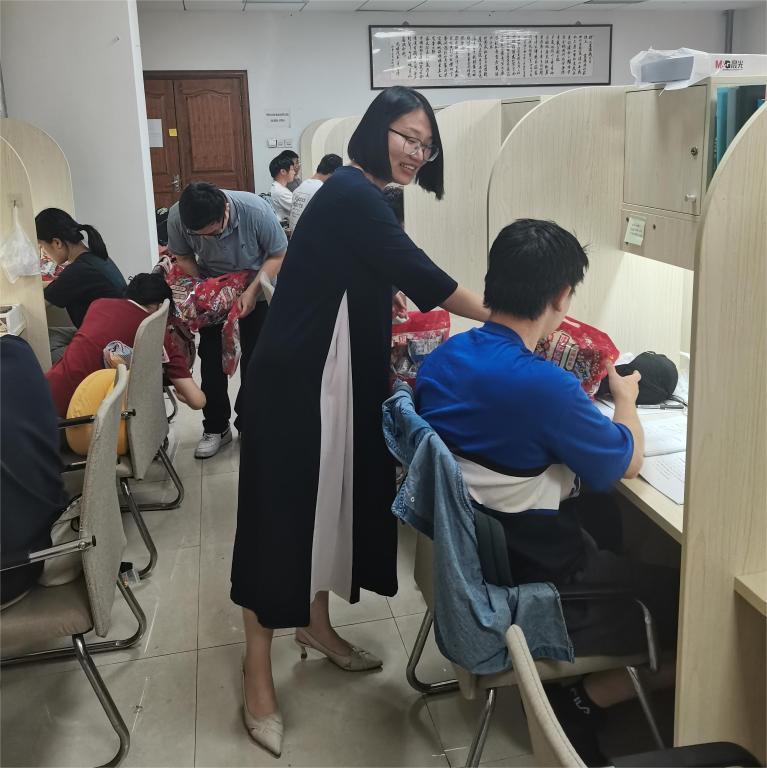 随后,各位老师为同学们一一送上好运加油礼包,并嘱托同学们在校期间认真学习之余要注意劳逸结合,饮食均衡,同时做好避暑防暑,以良好的作息规律和学习习惯迎接考研。