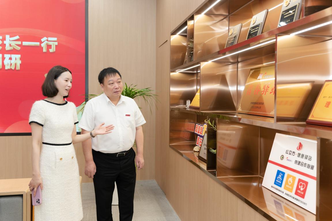 上午十点,赵敏校长一行走进泰隆银行五马支行看望实践队员,参观“青春驿站”,并聆听了实践队代表孙谦对实践队情况的汇报。孙谦介绍到实践队以平台经济下灵活就业人员的劳动安全保障研究为主题,以外卖骑手为调研对象,研究其劳动安全保障问题。她还介绍了具体实践内容以及过程中出现的一些问题,也在最后总结了此次实践的意义。市井长巷,聚拢来是烟火,摊开来是人间,正是他们在城市道路上的奔波,支撑着我们昨日、今日、明日的便捷生活,实践队的成员们希望通过用心体验和感受,让这些外卖骑手们得到更多的关怀与关注。