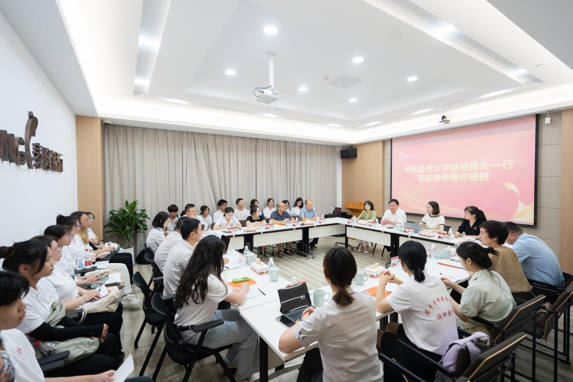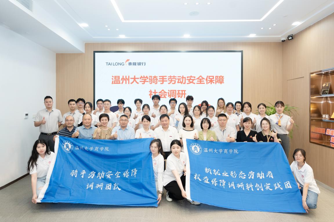7月13日上午,温州大学校长赵敏、团委书记易招娣、研工部部长高红星、党校办信息科科长郑兆钧、团委学生科技创新指导中心主任张淑娴一行赴泰隆商业银行五马支行慰问我院新就业形态劳动者权益保障调研科创实践团,泰隆银行温州分行副行长蒋丽英、泰隆银行温州五马支行行长章策、泰隆银行温州分行人力资源部总经理陈贞纯、泰隆银行温州分行综合办公室主任工会主席卢劭炜,鹿城团区委书记李璐颖、鹿城团区委办公室负责人谢思倩,银河赌场-澳门银河赌场官网