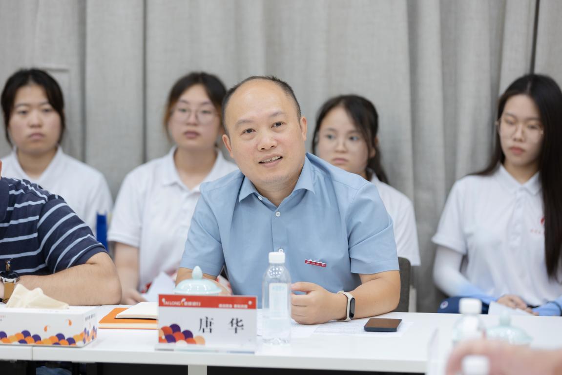接着,泰隆银行温州分行副行长蒋丽英发表讲话。她再次肯定了实践队指导老师夏怡然讲话中新生代青年坚韧的品格,指出此次实践也是再次见证了温州大学师生情系社会,服务民生的宝贵精神。她也向老师同学们介绍了泰隆银行的基本情况以及近几年来取得的成就,分享了泰隆银行优质的服务,并对温州大学此次暑期社会实践表示支持与感谢。
