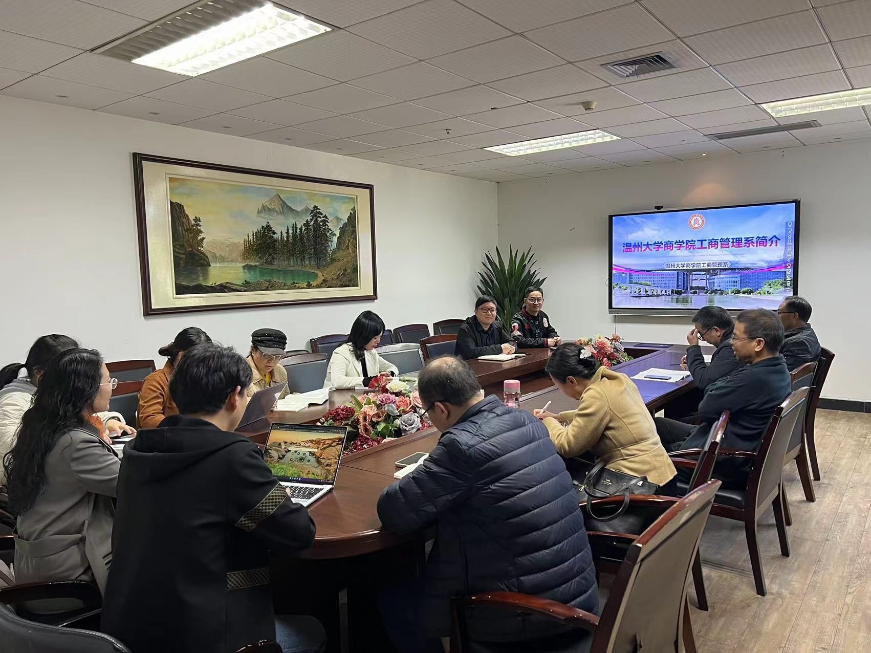 工商系在商学楼A222会议室举行十二月初教科研工作会议和教工第三党支部推优会议,工商系全体教师参加,会议由系主任陈敏老师和支部书记方嘉奇老师分别主持。
