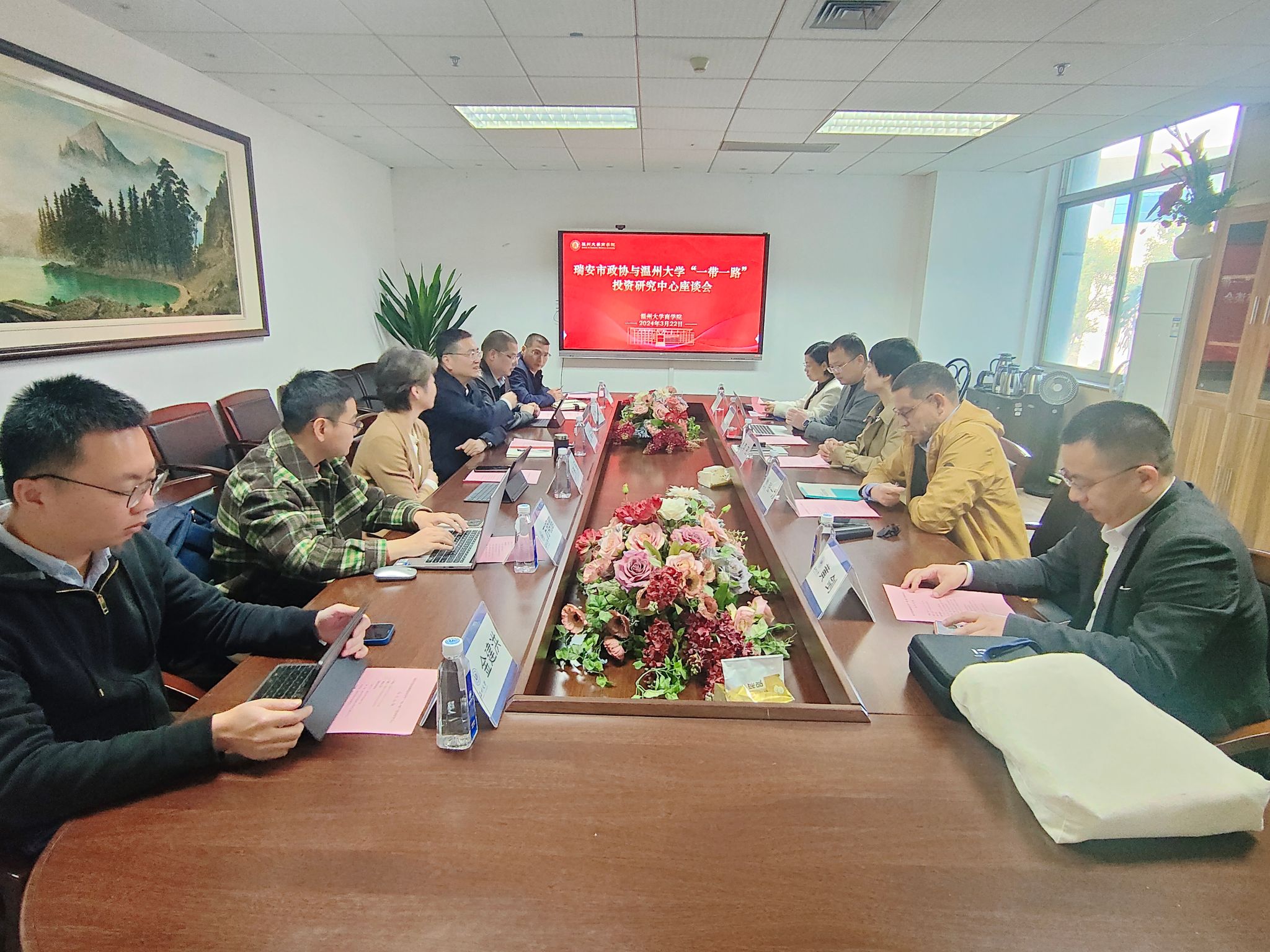 党委书记李密、副院长余向前、温州市世界温州人研究中心秘书长张一力、温州大学“一带一路”投资研究中心主任林俐、温州市数字贸易研究院执行院长黄剑等参加座谈会。