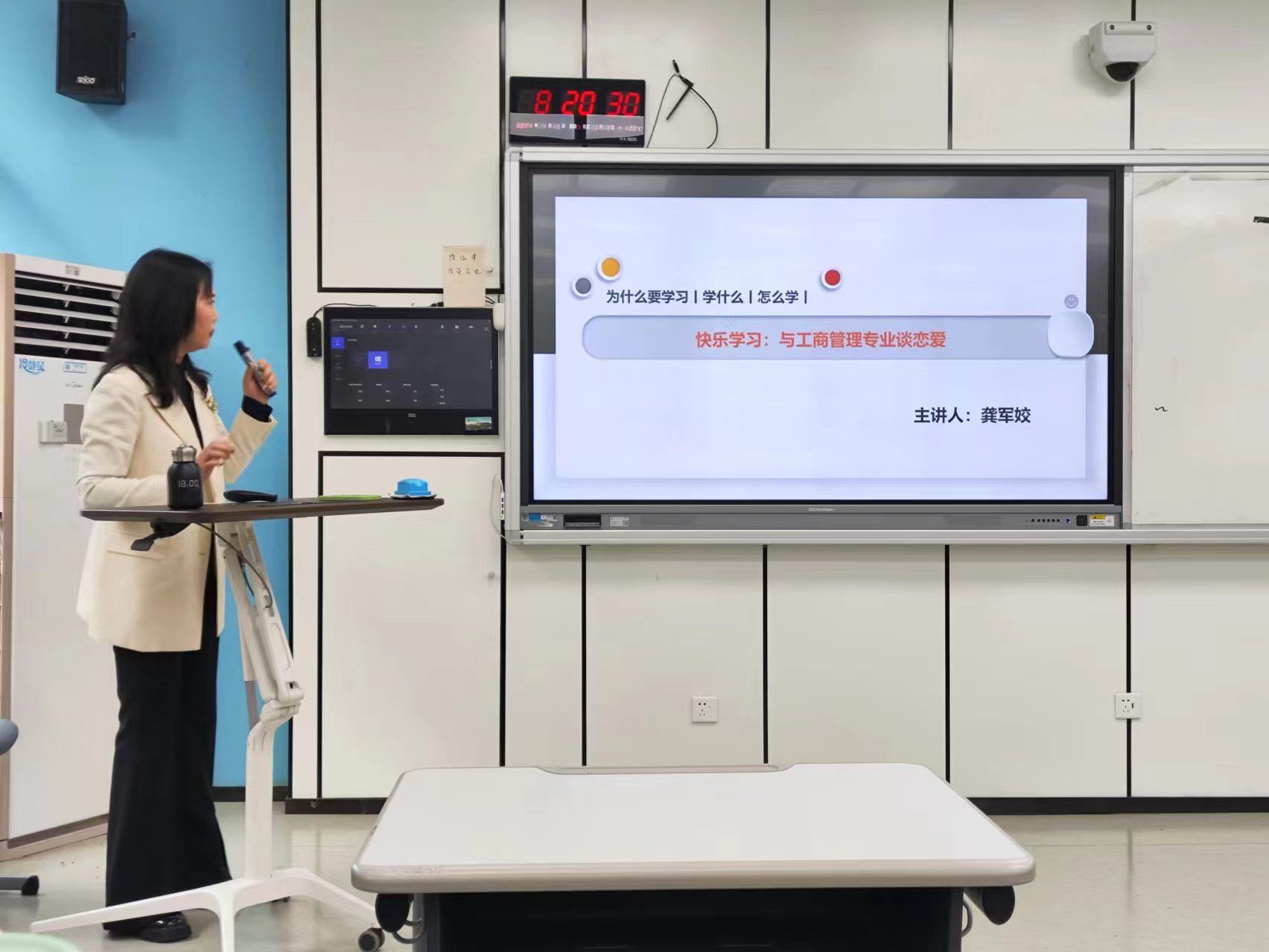 107教室内,龚军姣老师为23工商管理班级的带来了一节关于快乐学习的课程,同学们受益良多。