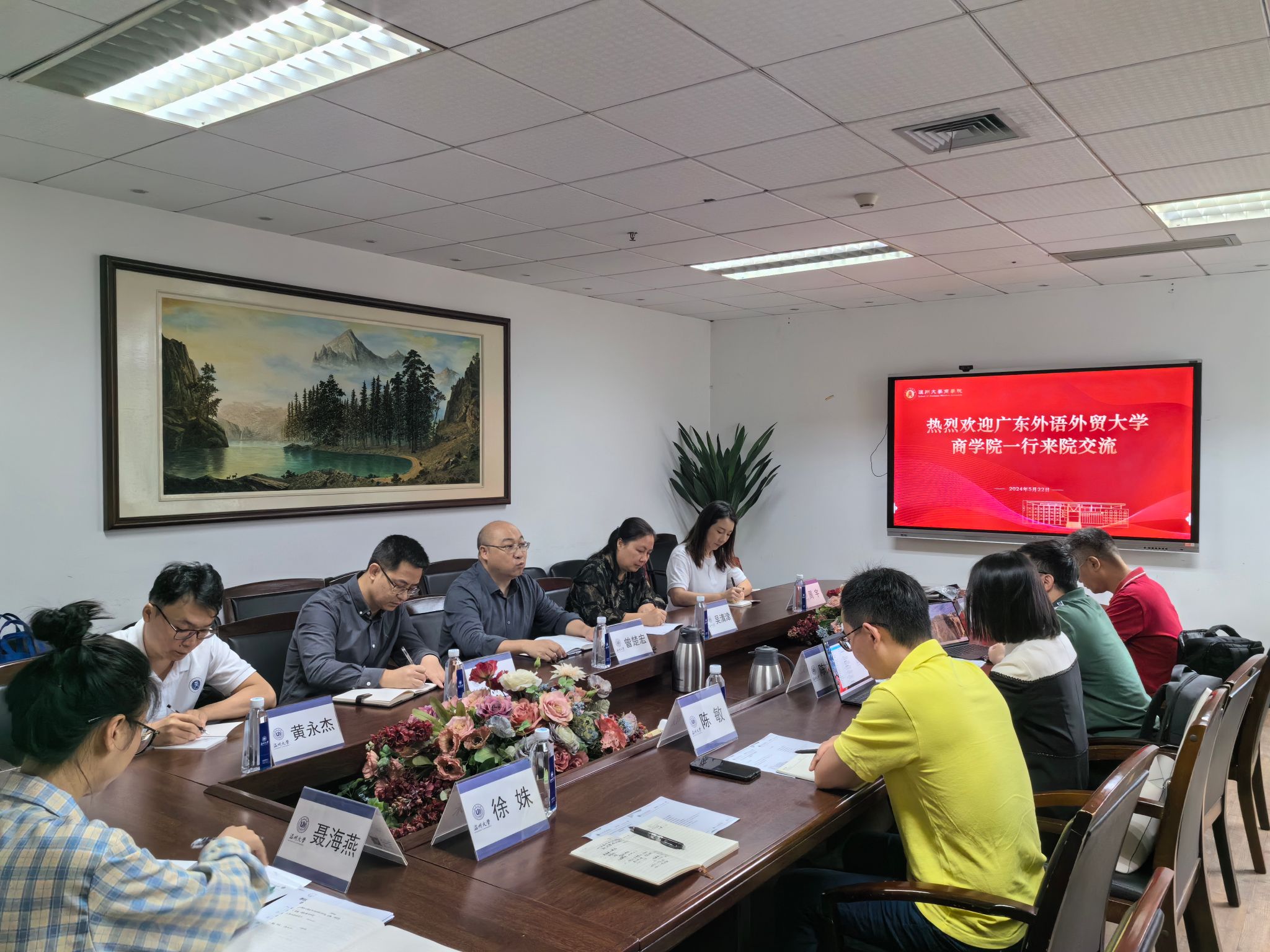 宣传片,简要介绍了我院的整体概况。会上,双方围绕国一流专业建设、新商科人才培养方案、数字化课程建设、国际化人才培养以及实习实践基地建设等等方面进行深入讨论和广泛交流,双方对专业内涵建设、人才培养创新模式等方面的开展情况和存在的问题进行了分享,也交换了可以互鉴的经验。