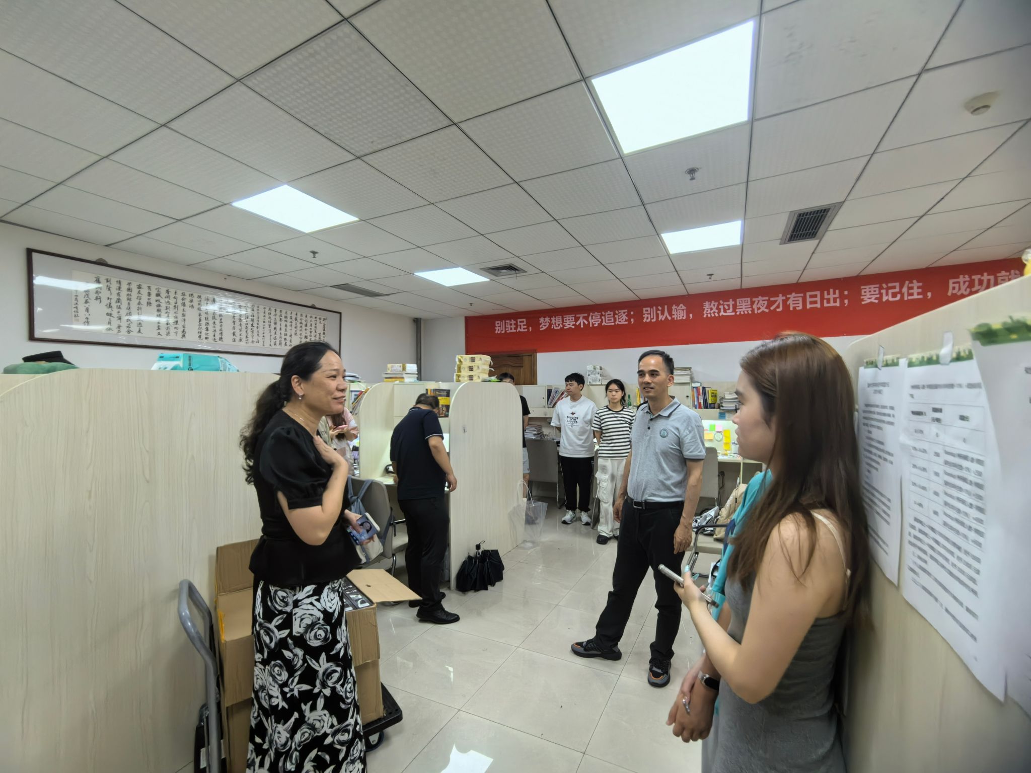 院长罗建利、党委书记唐华、党委副书记曾蓓蕾、各系主任及学生科全体辅导员等一行人来到716考研样板间走访慰问暑期考研留校学生并送去夏日清凉慰问品。