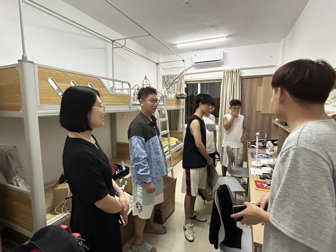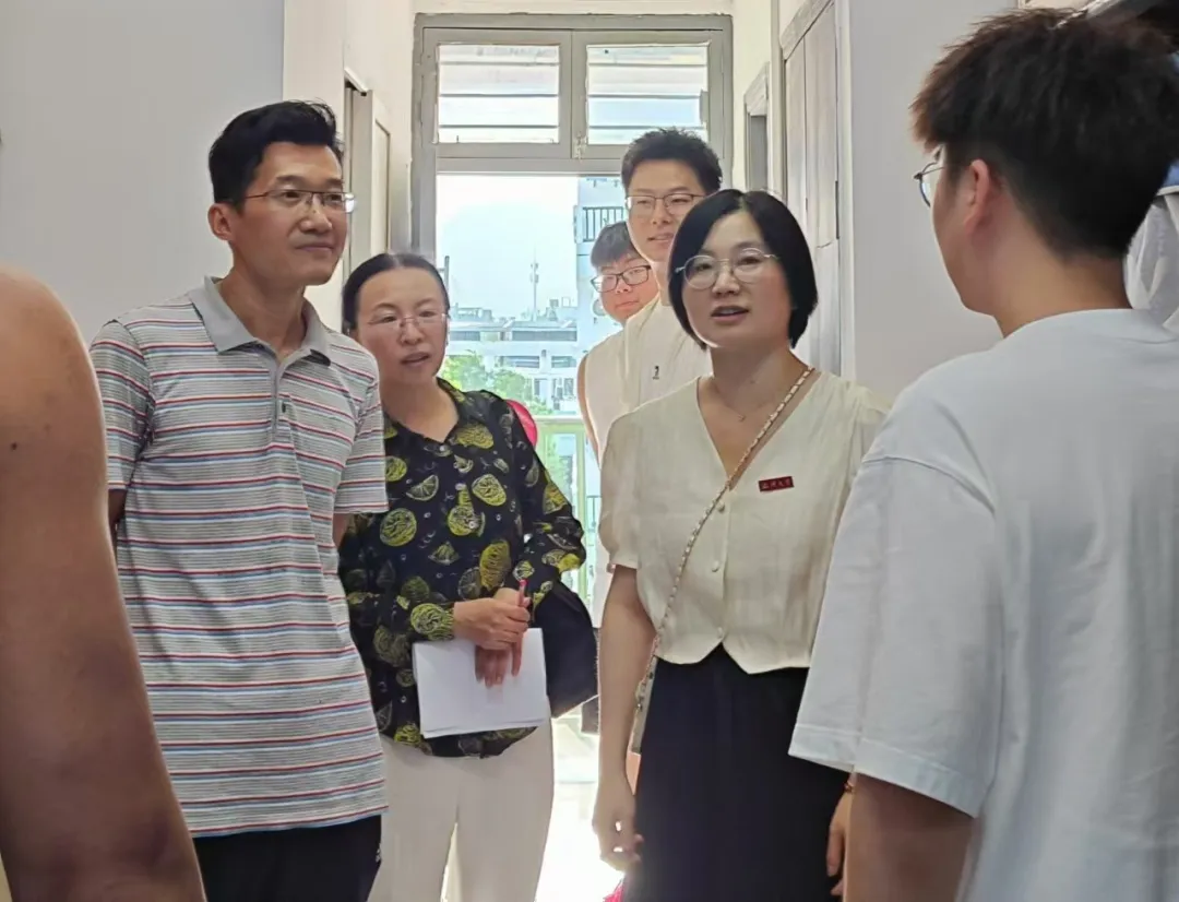 领导与老师们深入寝室内部,细心检查住宿环境与配套设施,确保每一处都满足学生生活需求。他们与每位学生进行了亲切交流,耐心倾听大家在生活上遇到的困难与需求,鼓励大家携手共建温馨和谐的寝室环境,保持积极向上的学习态度,以饱满的热情和踏实的态度迎接新学年的到来。