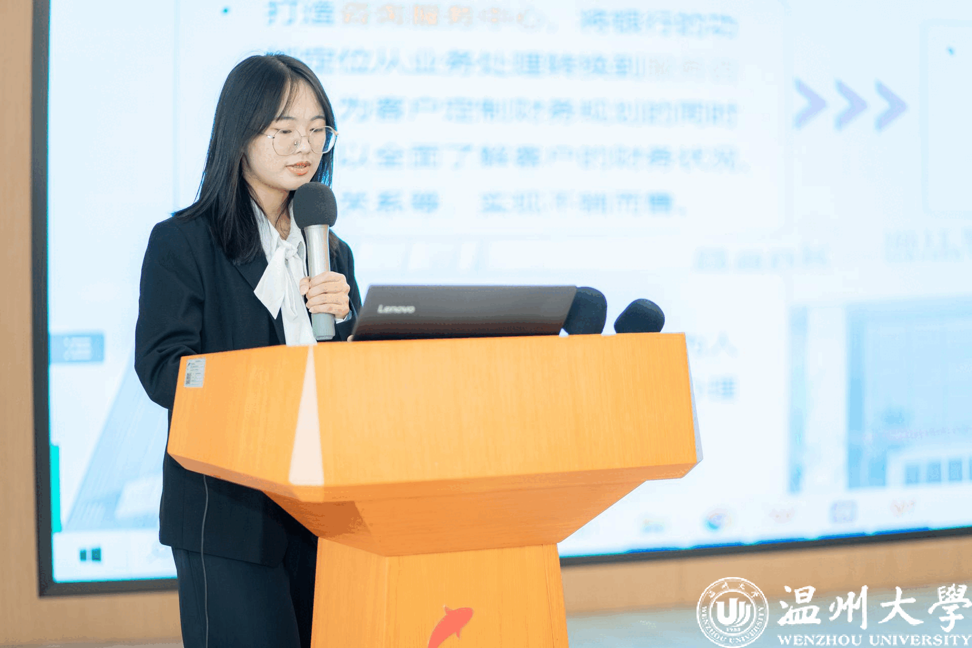 院长罗建利、党委书记唐华、党委副书记曾蓓蕾、金融系主任林德根、温州分行行长周建斌、总行人力资源部共享中心主任蔡丹作为嘉宾评委出席本次创新班结业答辩。