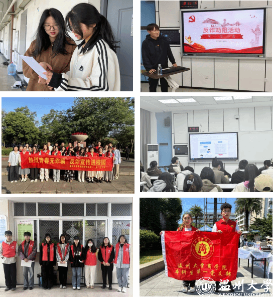 各学生党支部积极开展活动,本科生第一党支部深入宿舍区发放宣传单,讲解网络诈骗等热点问题;本科生第二党支部在广场和宿舍开展宣传活动,传授诈骗手段识别方法;本科生第三党支部由支部书记讲解真实案例,提醒同学们提高警惕;本科生第四党支部结合党日活动,邀请入党积极分子代表解读《防范电信网络诈骗宣传手册》;本科生第五党支部组织志愿者进入宿舍,讲解金融反诈知识;研究生第一、二支部在招聘会现场开展“金融防诈”宣讲活动,提升同学们的防范意识。