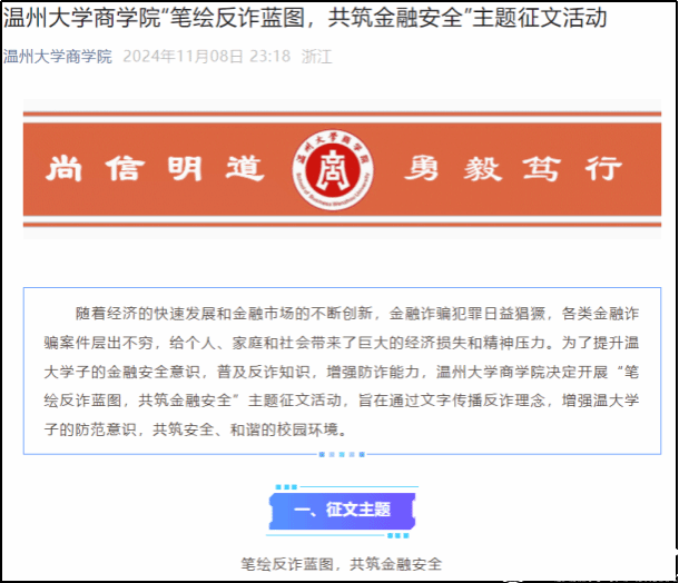 研究生会还策划了“笔绘反诈蓝图,共筑金融安全”主题征文活动和“智防金融诈骗,共筑安全防线”宣传海报征集活动,通过文字和视觉艺术传播反诈理念,增强学生的防范意识,扩大活动影响力。