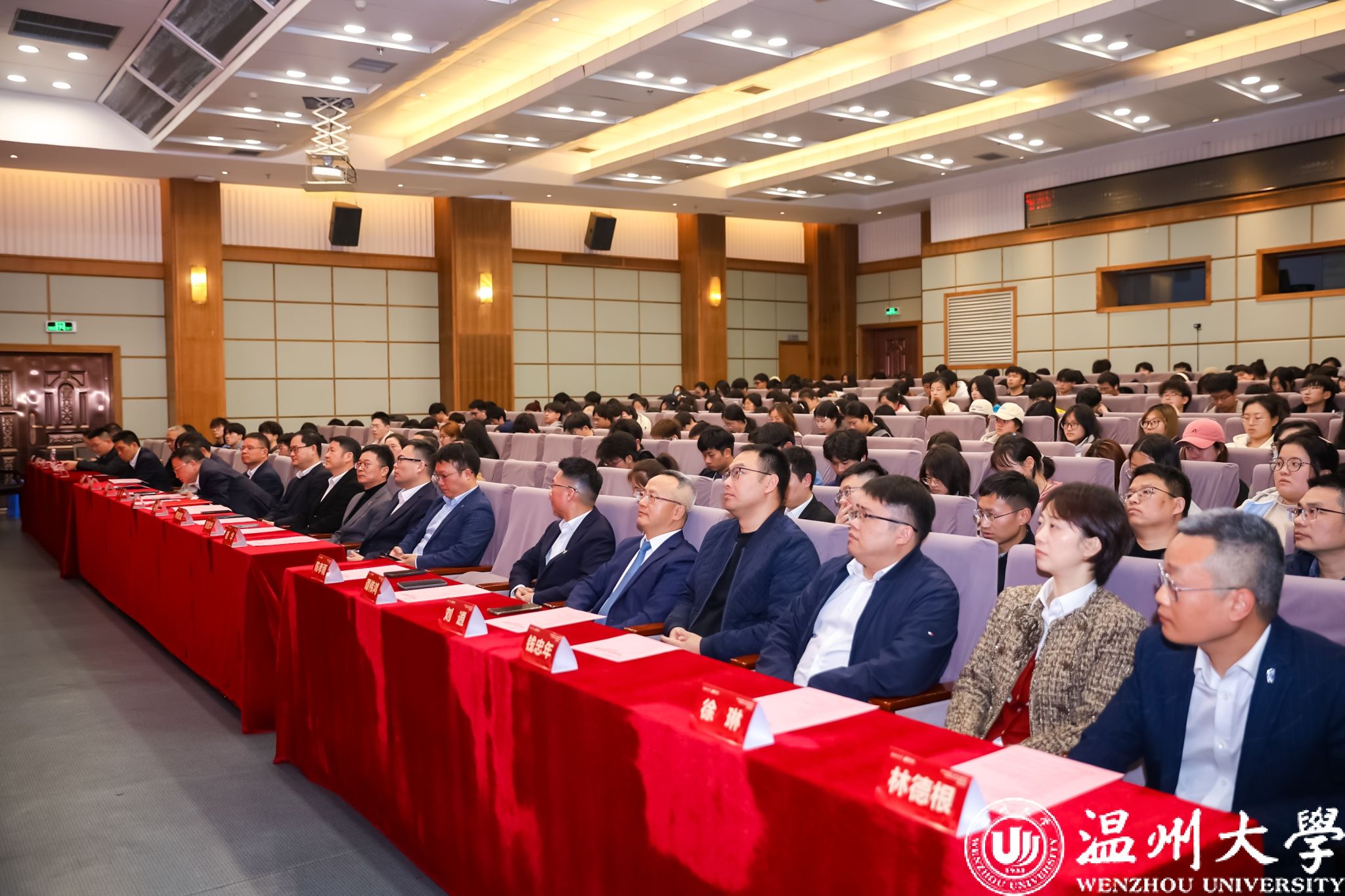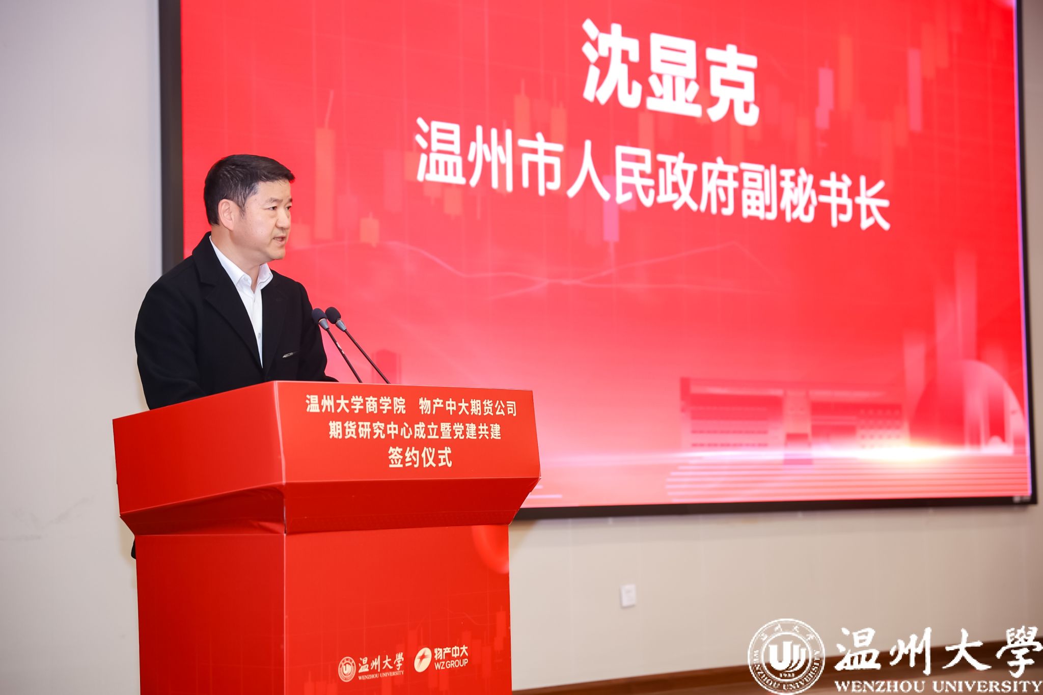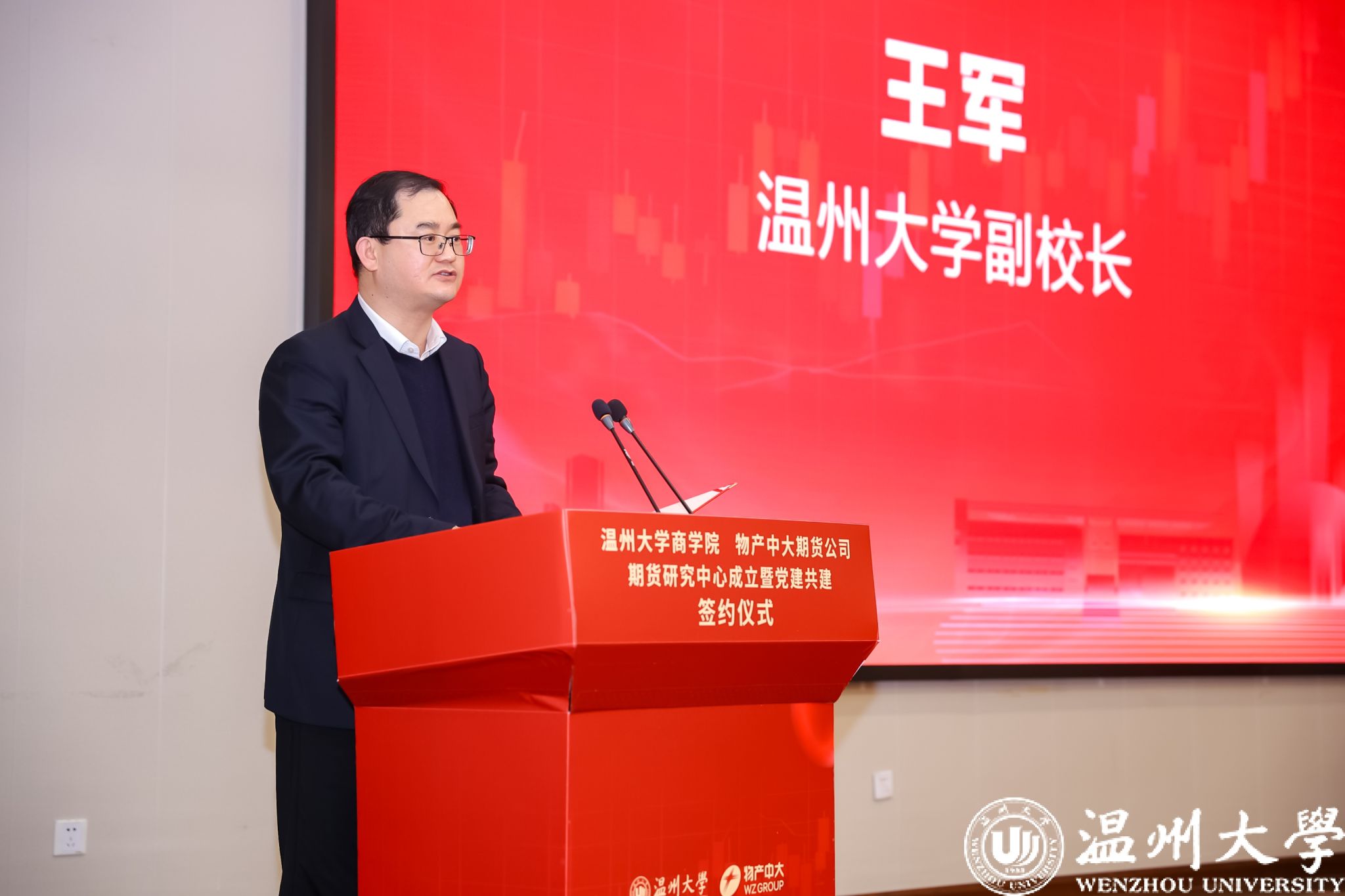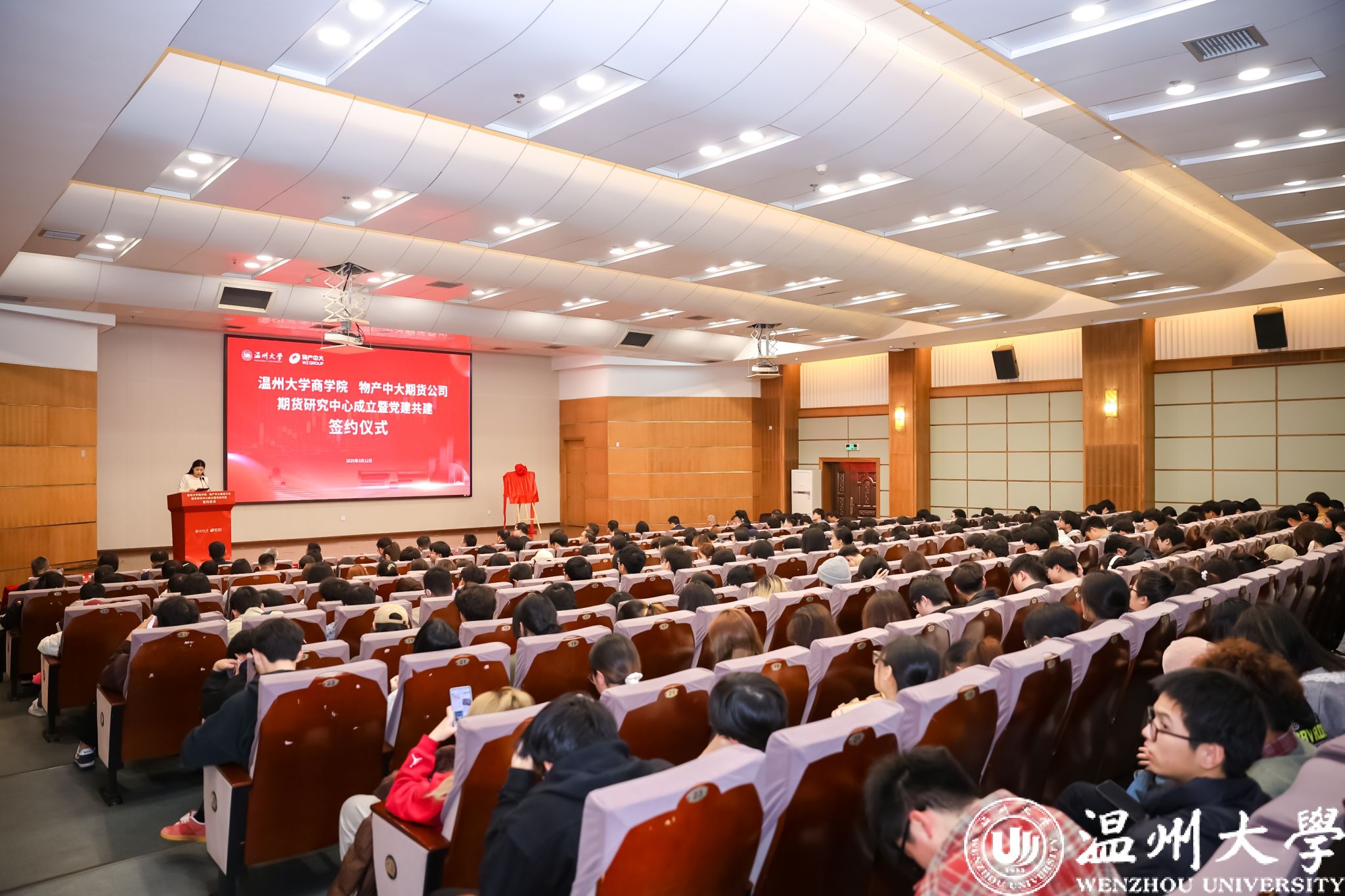 与物产中大期货有限公司共建期货研究中心成立仪式暨党建共建签约仪式在温州大学北校区信息楼报告厅隆重举行。温州大学副校长王军、温州市人民政府副秘书长沈显克、物产中大期货有限公司董事长兼党委书记朱彤、泰隆银行温州分行行长周建斌、平阳县人民政府副县长朱邦丰、物产中大期货有限公司副总经理兼党委委员刘建华、银河赌场-澳门银河赌场官网