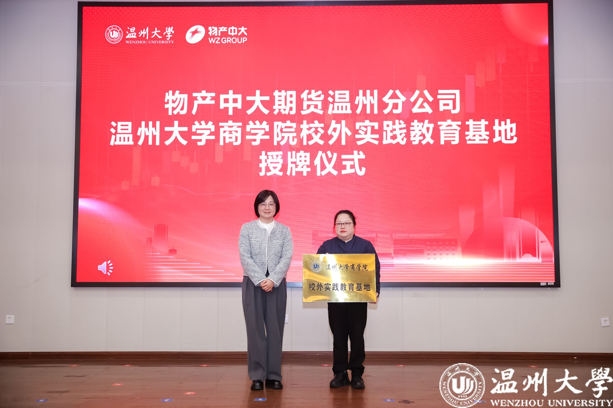 副院长王露向物产中大期货有限公司温州分公司副总经理李嫣授牌。