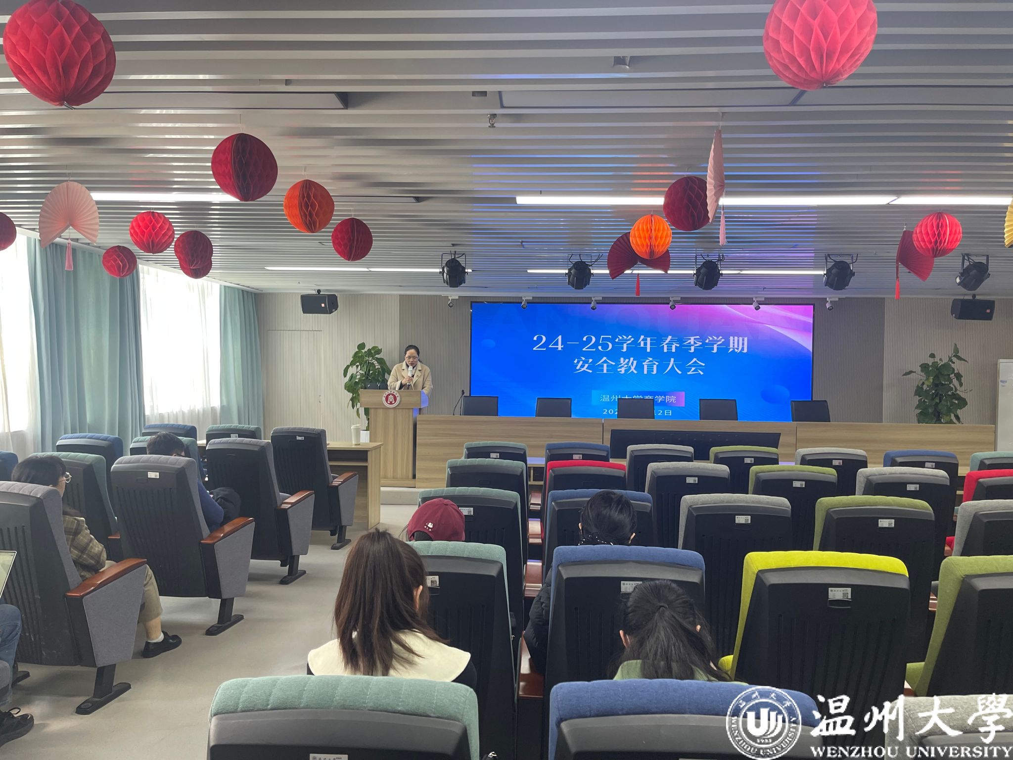 为深入推进平安校园建设,切实加强校园安全宣传教育,开学以来,我院通过学生干部会议、班主任工作研讨会、全体学生大会等多渠道召开24-25学年春季安全教育大会,通过分层覆盖、精准施策,系统部署意识形态安全、反诈防骗等重点工作,为校园安全稳定筑牢防线。