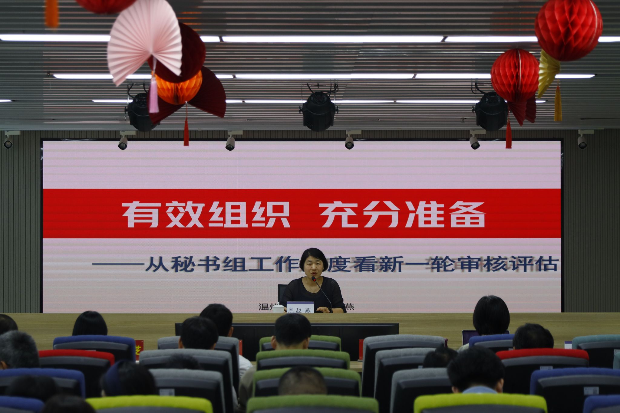 教师教学发展中心主任赵燕作《有效组织,充分准备——从秘书组工作角度看新一轮审核评估》专题讲座。赵燕主任从价值要义、工作总览、关键流程等方面系统解读了审核评估要点,重点剖析了自评报告准备、问卷调查实施、各类材料准备、专家考察活动及三次重要会议筹备等核心环节,为银河赌场