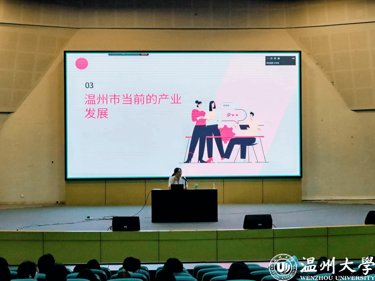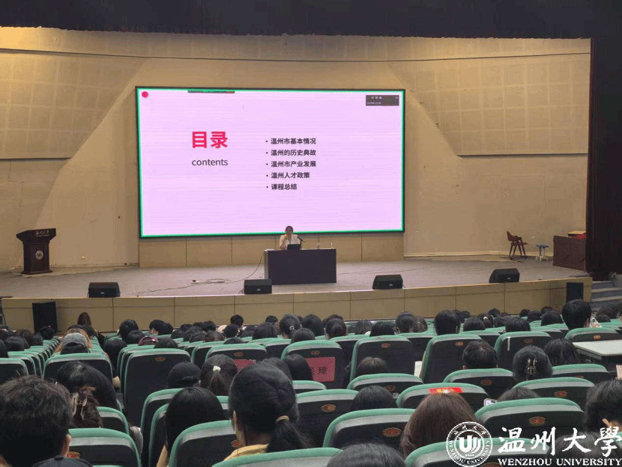 党委副书记曾蓓蕾主讲,围绕温州的景色、精神文化、人才政策等多个维度展开,为同学们带来了一场知识与思想碰撞的盛宴。