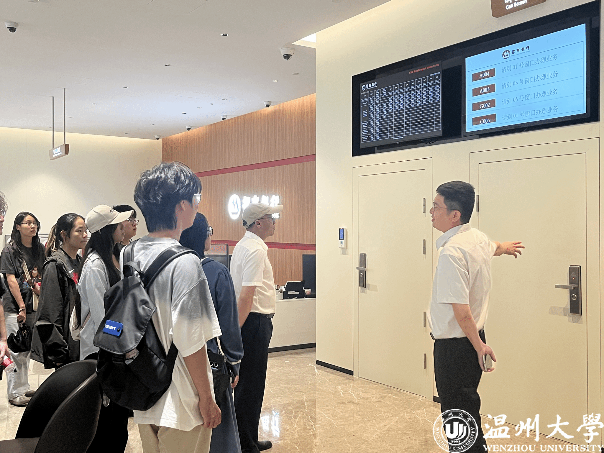 最后,同学们来到温州分行营业部,进行服务体验现场教学。工作人员从客户接待、业务办理流程,到服务礼仪与沟通技巧,进行了全方位的示范与讲解。同学们还亲自参与到部分业务的模拟操作中,在实践中感受金融服务的专业性与细致性。