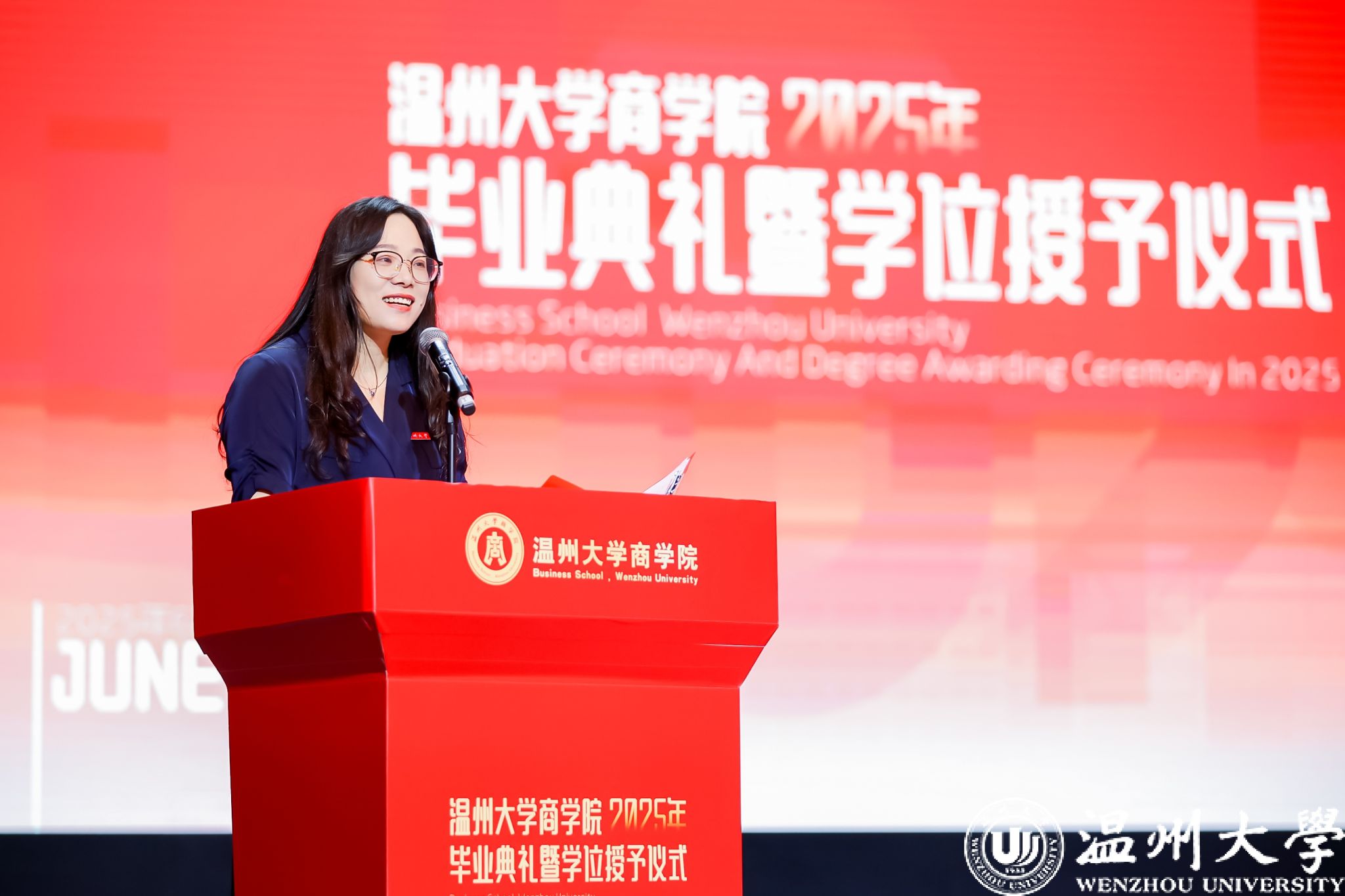 赋予的智慧与勇气,并号召同学们带着“温大基因”勇敢奔赴星辰大海。正如兰佳慧同学所说,一所大学的品格,藏在它的一草一木中,而一个人的成功,正藏在生活的一笔一划中,保持对生活的热情,彰显温大商院学子的精神,是兰佳慧同学对学弟学妹的真诚嘱托。