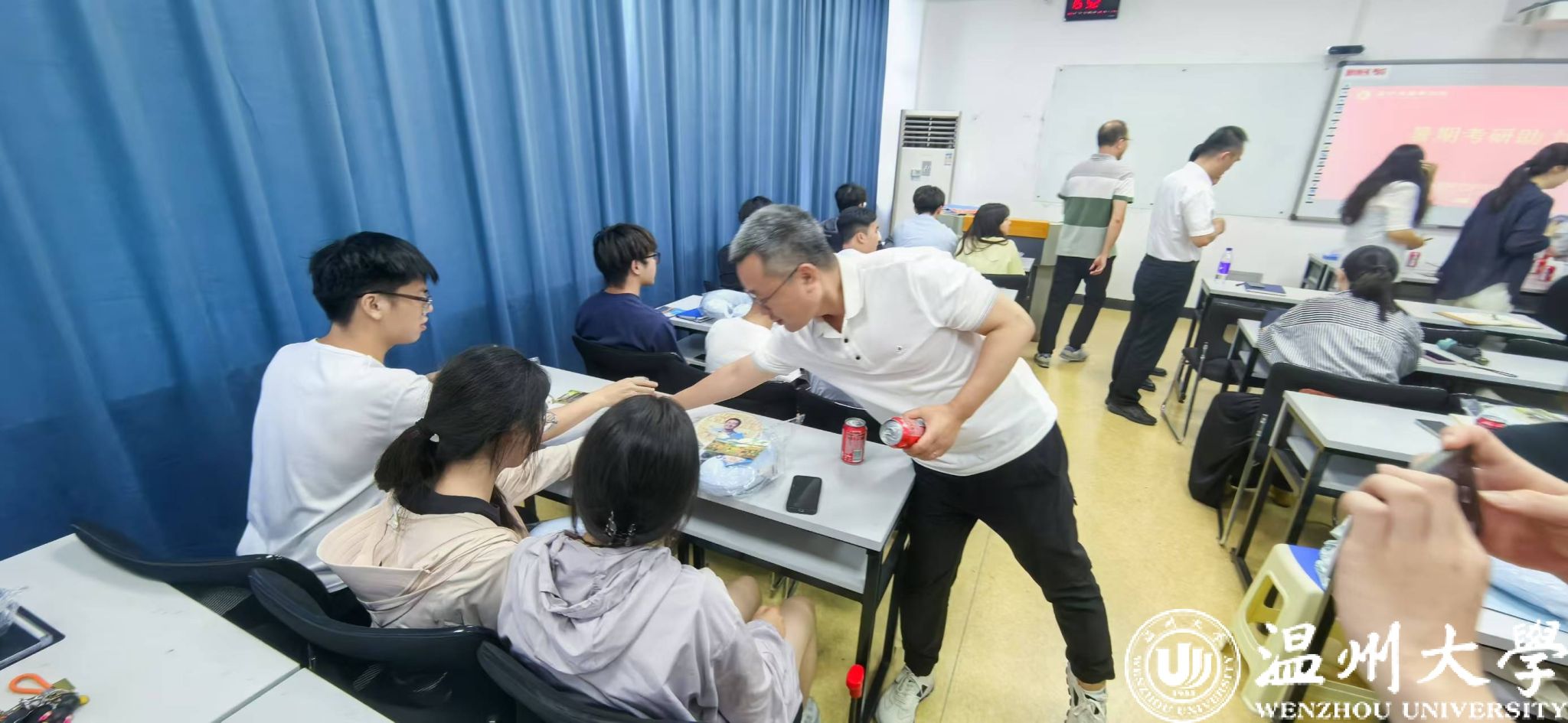 领导班子和教师代表来到北3考研教室,慰问暑期留校复习的同学们。