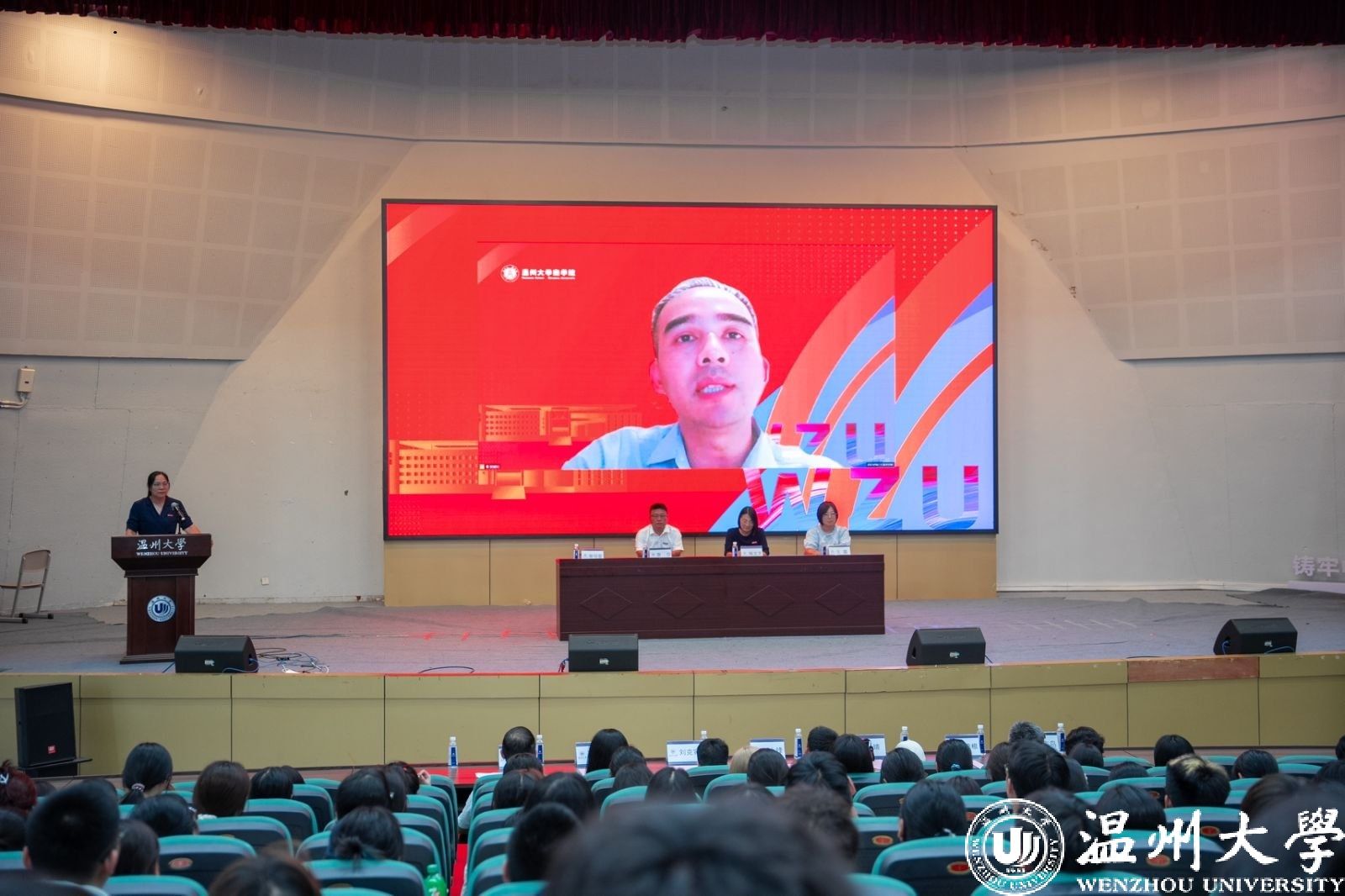 会议伊始,罗建利院长通过视频方式向全体新生致以诚挚问候和热烈欢迎,并围绕“成为什么样的人”提出三点期望:首先,他希望同学们胸怀家国,做有志气的人。他指出,作为新时代大学生,更要明确自己肩负的重任和发展的方向,早立志、立大志,努力在为国履职、为民尽责的崇高目标中追寻人生意义、实现人生价值。其次,罗院长期盼同学们能够笃学善思,做有底气的人。他指出人类追求幸福生活的必经途径是不断地学习、高效率地学习,而学习的黄金阶段,则是大学时期。最后,罗院长冀望同学们坚韧不拔,做有勇气的人。他强调凡成大事者,往往都能在艰难曲折中保持坚韧不拔的毅力和永不服输的韧劲,希望同学们始终保持乐观向上的态度,在温大商院这片沃土上扎根成长、勇攀高峰,成为具有“商科思维、国际视野、社会责任”的时代新人。