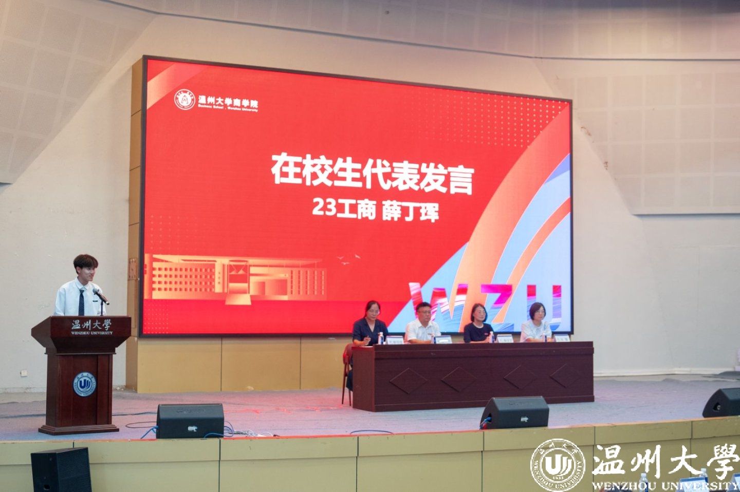 老生代表23级工商管理薛丁珲同学结合自身经历,分享了自己从一名普通学生成长为省级宣讲员、学科竞赛获奖者、校园活动主持人的经历。他坦言这一切离不开银河赌场
