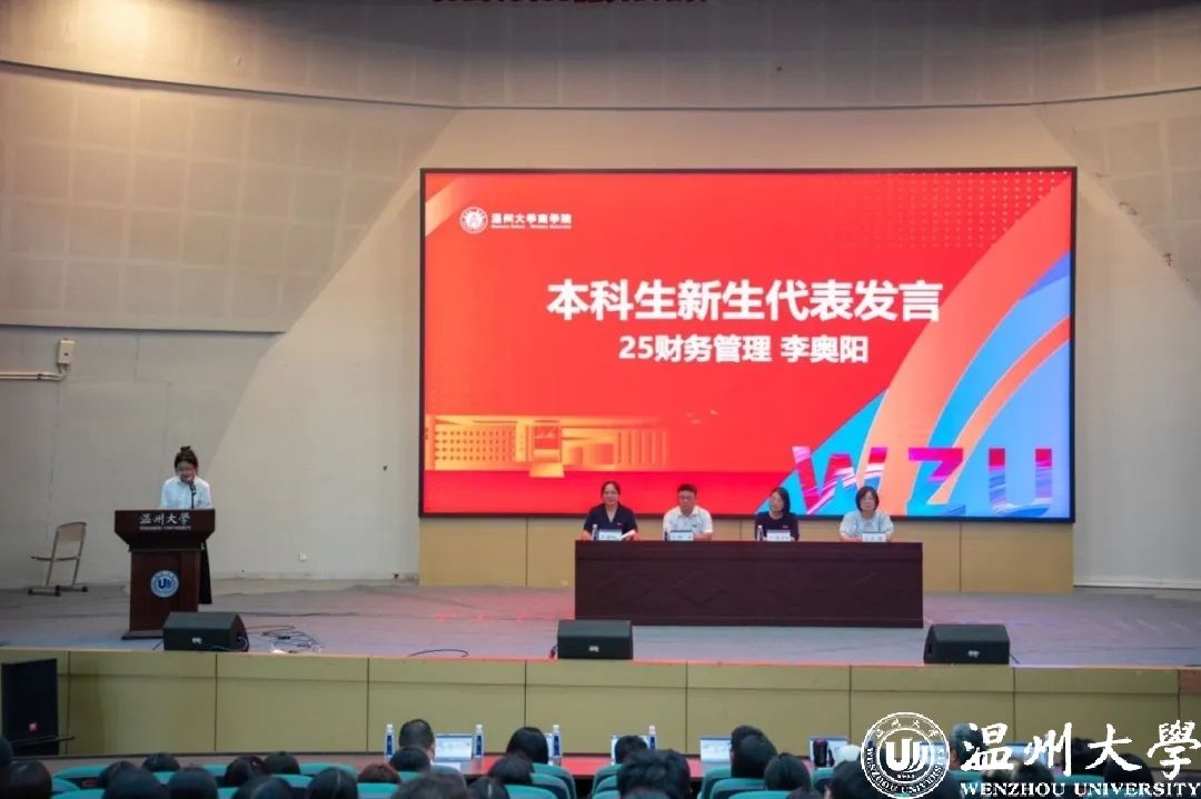 25财务1班李奥阳同学作为本科新生代表发言,她从兰州来到温州,选择银河赌场-澳门银河赌场官网