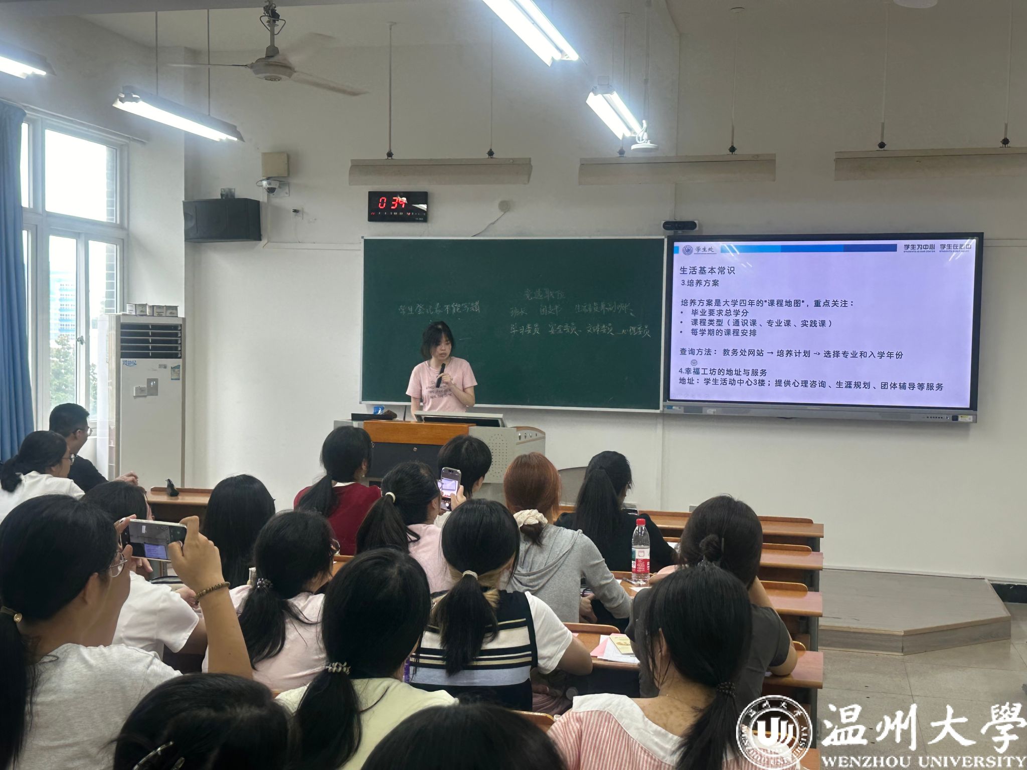 接着,进入事项解读环节。班主任们聚焦马克思主义宗教观,结合法规与校园实际,明确“宗教与教育相分离”原则;通过“校园贷”“刷单诈骗”等案例,讲解诈骗防范要点,提醒新生守护财产安全。班助解读《学生手册》中纪律处分条例、违规大功率电器使用规定;介绍必须关注的校园公众号、宿舍报修途径、校园通知查询方法、培养方案查询路径、幸福工坊地址,以及校院学生会、学生社团情况。