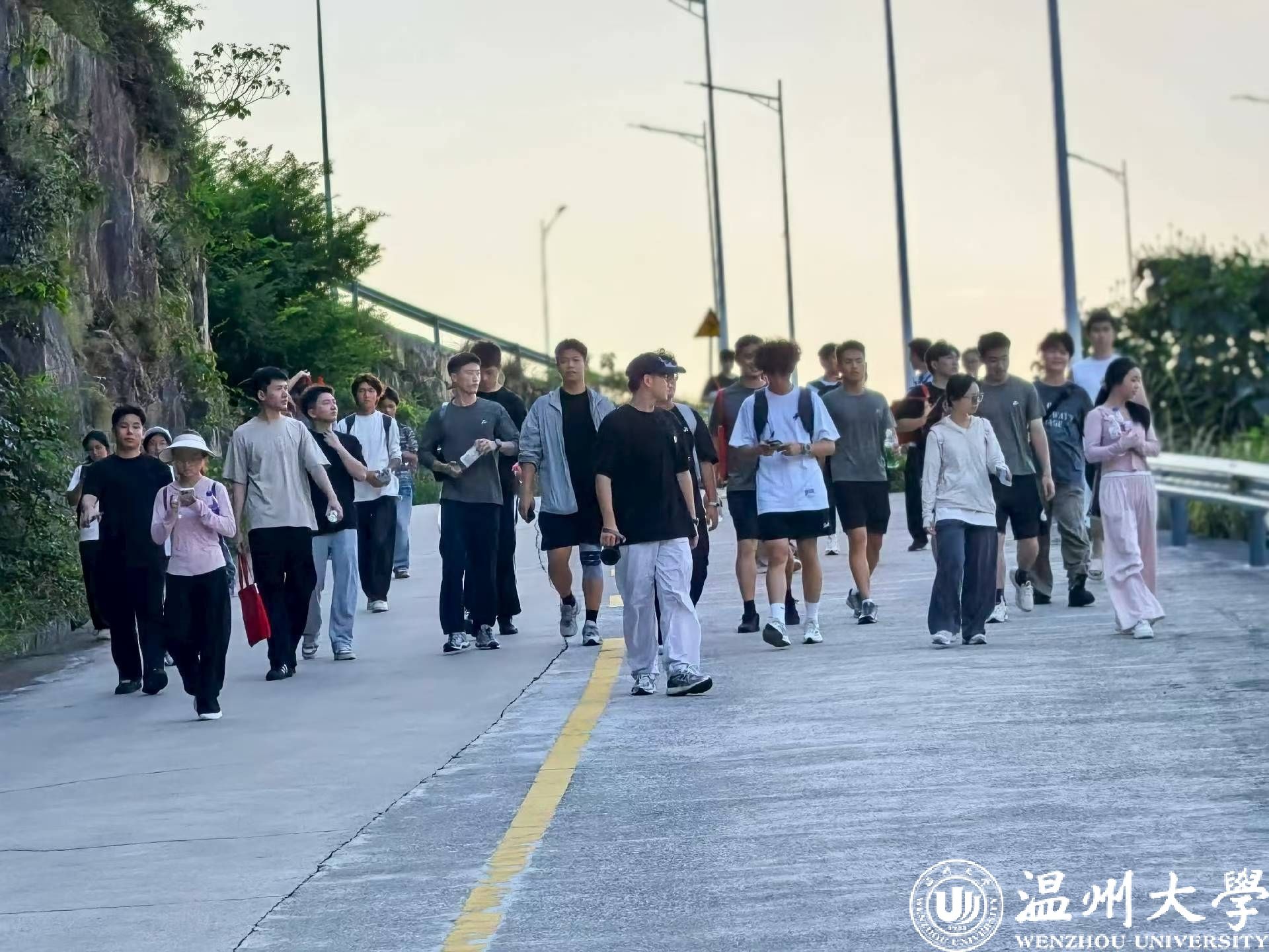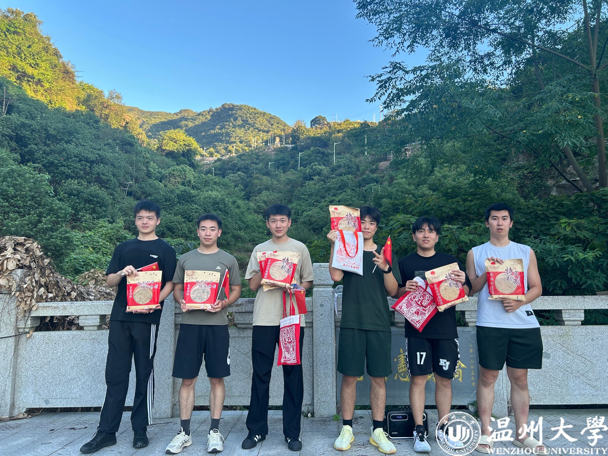 教师为学生们分发月饼。大家也围坐在一起,唱响《强军战歌》等红色歌曲,“听吧,新征程号角吹响,强军目标召唤在前方……”激昂的旋律回荡在山林间。“这是我第一次在温州过中秋,能和退役大学生们、各族同学一起登山赏景、分享月饼,特别有意义!”来自贵州的土家族学生刘同学感慨道。