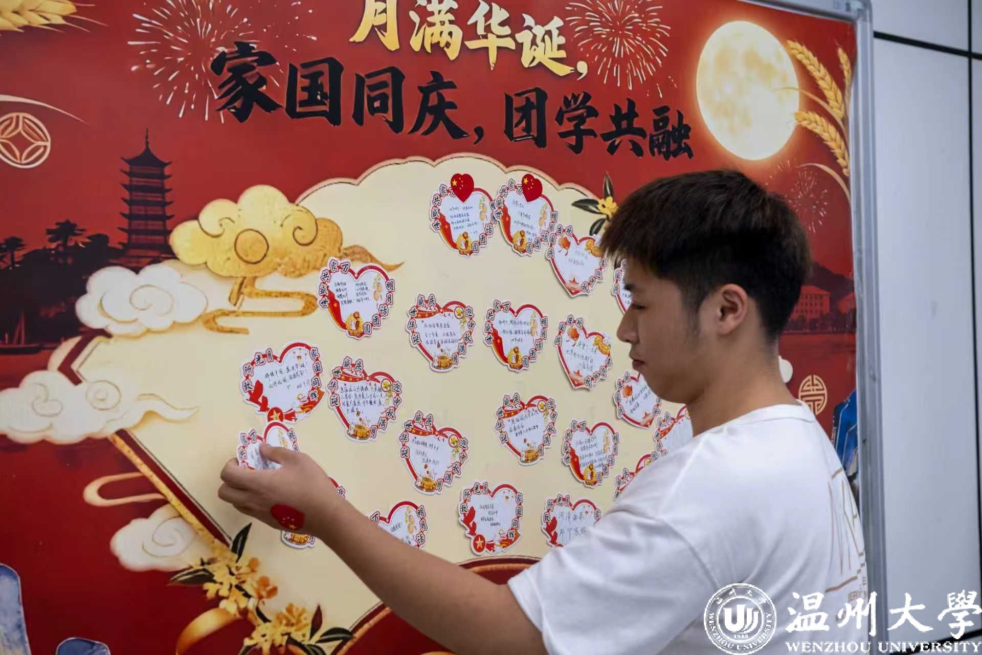 随后,活动进入到了“祝福拼图”环节。成员们纷纷提笔,将对祖国的美好祝愿、对中秋团圆的真挚祝福、对团学发展的殷切期待寄托在国庆主题卡片上。“愿以吾辈之青春,护我盛世之中华”“祝银河赌场
