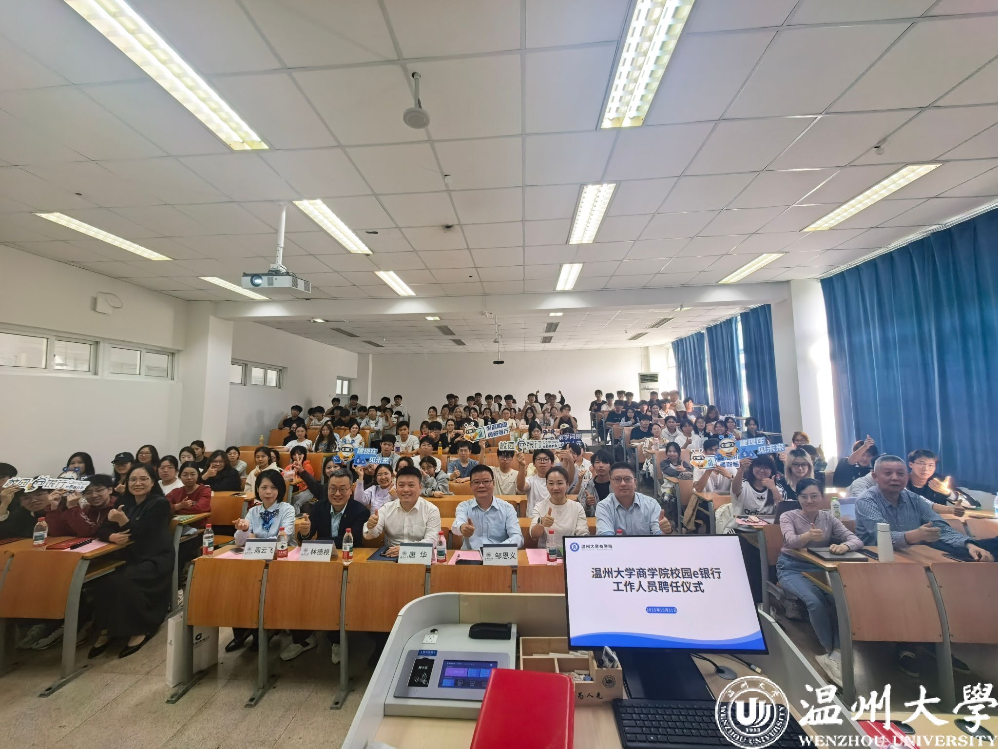 校园e银行工作人员聘任仪式在北2-411教室举行。本次仪式别开生面地融入2025级金融工程专业导论课堂,全体新生现场观摩。中国建设银行温州市分行网络金融部总经理邹恩义、银河赌场