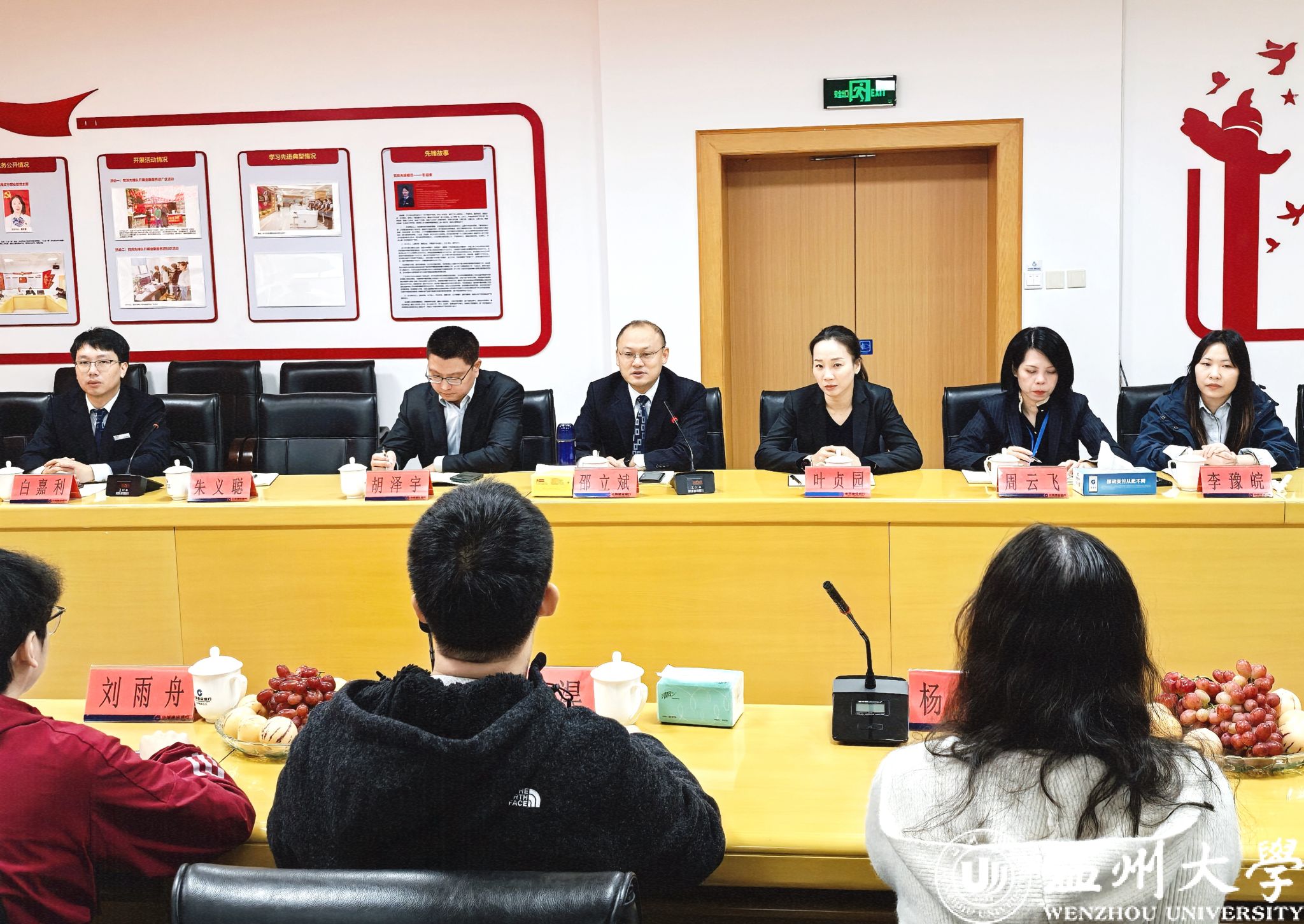 座谈交流环节中,建行瓯海支行行长邵立斌从行业发展趋势出发,阐述了校园e银行作为银校共建平台在人才培养方面的重要意义,鼓励学生珍惜实践机会,在真实场景中提升专业素养。活动还设置了“学长分享”专题,两位毕业于温州大学、现就职于建行的员工作为校友代表,分享了从校园到银行职业人的经历,并就职业规划、岗位能力等内容与学生展开互动交流。