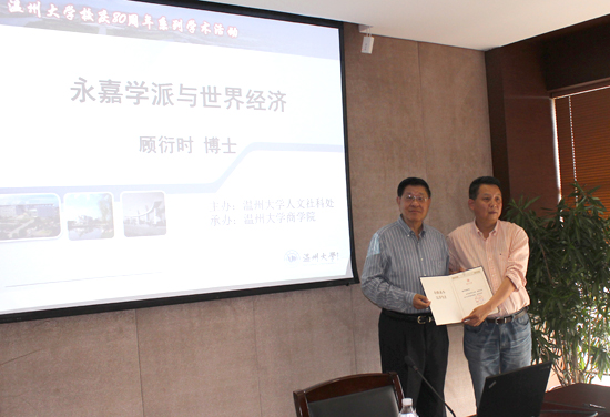 5月17日,温州大学北美校友会顾问、知名社会活动家、美籍华人顾衍时博士来校参加80周年校庆,并莅临银河赌场 作《永嘉学派与世界经济》学术讲座。 银河赌场 党总支书记胡振华代表学校向顾博士颁发“温州大学特聘教授”证书,并介绍了学校及银河赌场 的历史变革、发展现状、特色商科等情况。顾博士结合自己在美国多年从业经验,同与会人员交流了美国财税管理的实务与制度、金融状况及财税、金融等相关法律的立法情况。 银河赌场 各系主任、相关专业老师、学生等参加了本次论坛。