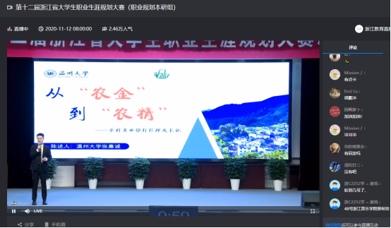 金融工程专业的大三学生张嘉诚在第十二届浙江省大学生职业生涯规划大赛的舞台上铿锵有力地诉说着自己的梦想。而他也不负众望,拿下了该项赛事的一等奖。