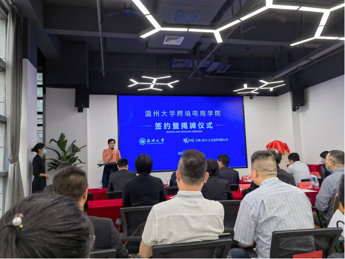 在当天签约仪式上,创星(温州)企业服务有限公司董事长李聪斌致欢迎辞,2019年底爆发的新冠疫情改变了外贸的模式,以展会为主的温州外贸企业谋求转型。温州人敢为人先、报团取暖,自发成立了琅琊阁外贸企业联合体。用了不到300天时间,琅琊阁建成4层楼达5000平米的联合办公场地,吸收了24家核心企业,举办了50场沙龙和100多场学习。琅琊阁和温州大学开展校企合作以来,已经在人才培养、人才招聘、师资共建等方面成果丰硕。温州大学跨境电银河赌场
