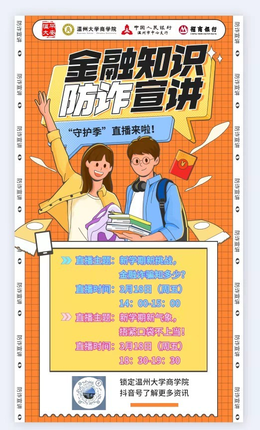 为让在校学生更好地学习金融教育知识、提升金融防诈意识和金融素养,维护校园和谐稳定,3月18日,在人行温州市中心支行指导下,温州分行联合银河赌场-澳门银河赌场官网