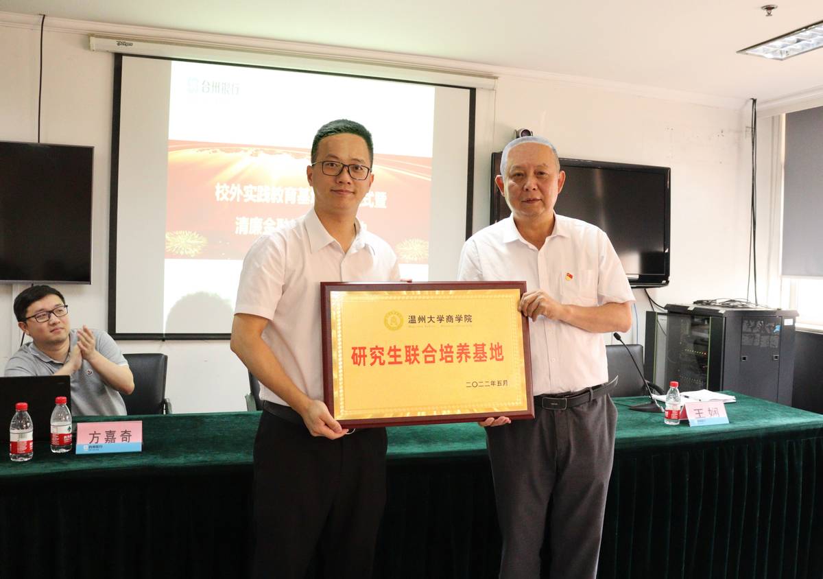 研究生联合培养基地”。这意味着双方在构筑银校实习就业的平台建设成功落地,而联培基地的落地也将为台州银行提供强有力的人才保障。
