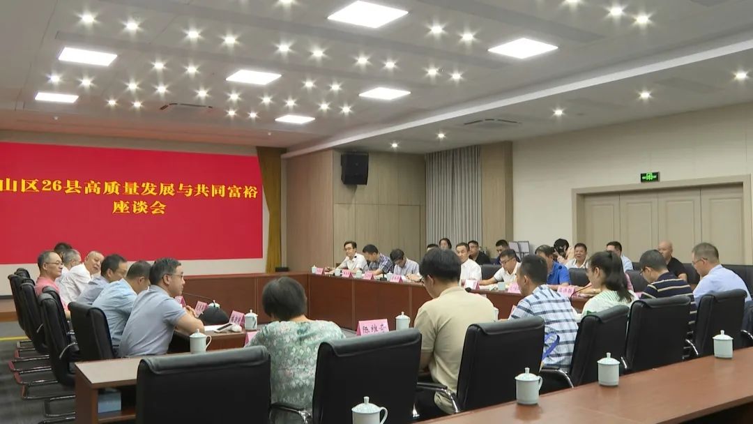 8月12日,我县举行山区26县高质量发展与共同富裕座谈会。浙江省经济学会专家组一行以及县相关部门负责人参加会议。