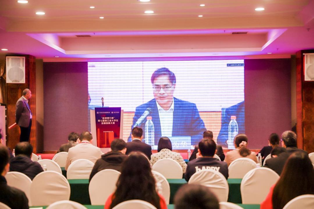 杭州银行股份有限公司科技文创事业部副总经理赵文斌代表本届大赛的冠名单位,对浙江省教育厅、浙江省大学生科技竞赛委员会、钱塘江金融港湾高等教育联盟及各兄弟高校对本届大赛的大力支持表示衷心的感谢。他提出,举办浙江省金融创新大赛是杭州银行和浙江省高等院校战略合作的重要内容之一,也是杭州银行深化校企合作、创新人才培养模式的重要路径之一。浙江省金融创新大赛的成功举办有助于杭州银行与高校在课题研究、学生招聘、学历进修和学生实践等方面进一步深化合作。最后他主张,要继续发扬参赛过程中的创新精神,期待金融赋能,航向未来。