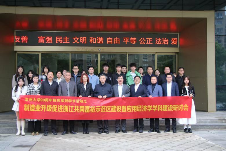 3月30日,温州大学举办“制造业升级促进浙江共同富裕示范区建设暨应用经济学学科建设”学术研讨会,来自中国人民大学、对外经贸大学、南方科技大学、温州大学、温州市商务局、温州市共富办等机构的专家学者,围绕制造业升级对实现共同富裕的意义展开研讨。