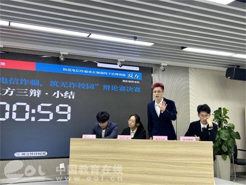 冠军争夺战采用固定辩题“防范电信网络诈骗重在加强网络治理效能VS防范电信网络诈骗重在加强线下治理效能”。正方认为,防范电信网络诈骗重在加强网络治理效能。他们指出,随着互联网的普及和发展,电信网络诈骗违法犯罪手段日益翻新,给人们的生活带来了极大困扰,要想有效地防范电信网络诈骗,必须加强网络治理。