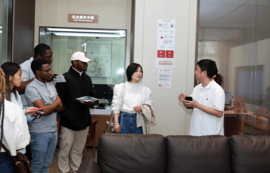 值得一提的是,参加本次活动的学生里还有十余名金融工程系硕士留学生。为提升外籍学生的金融服务体验,工作人员特意为他们介绍了该行针对境外人员提供的便利服务,如特设窗口、英文服务指南、外币兑换币种等。