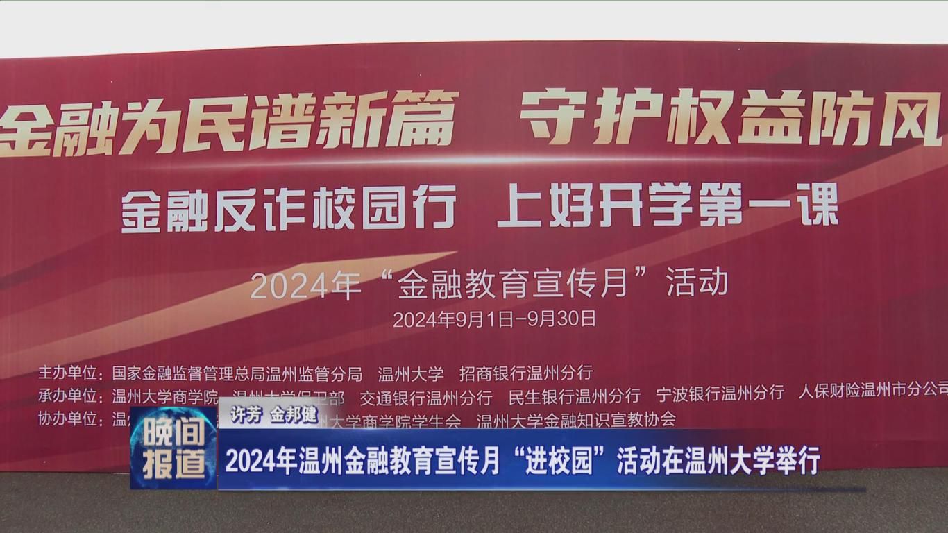 近日,2024年温州金融教育宣传月“进校园”活动在温州大学举行,活动旨在提升大学生金融素养,有效防范和化解金融风险。