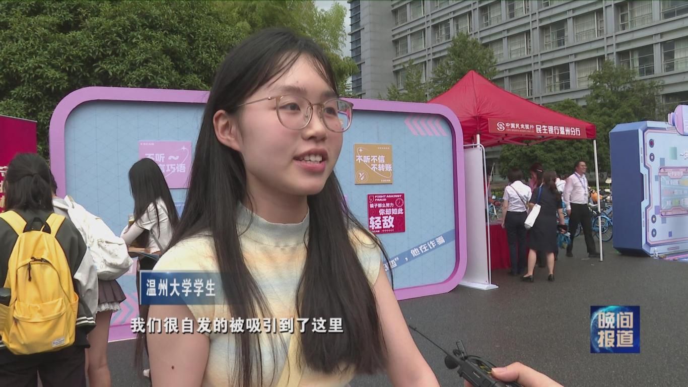 温州大学学生:这里开展很多小游戏,我们很自发的被吸引到了这里,然后同时又学到了很多的反诈知识,我觉得特别有意义。