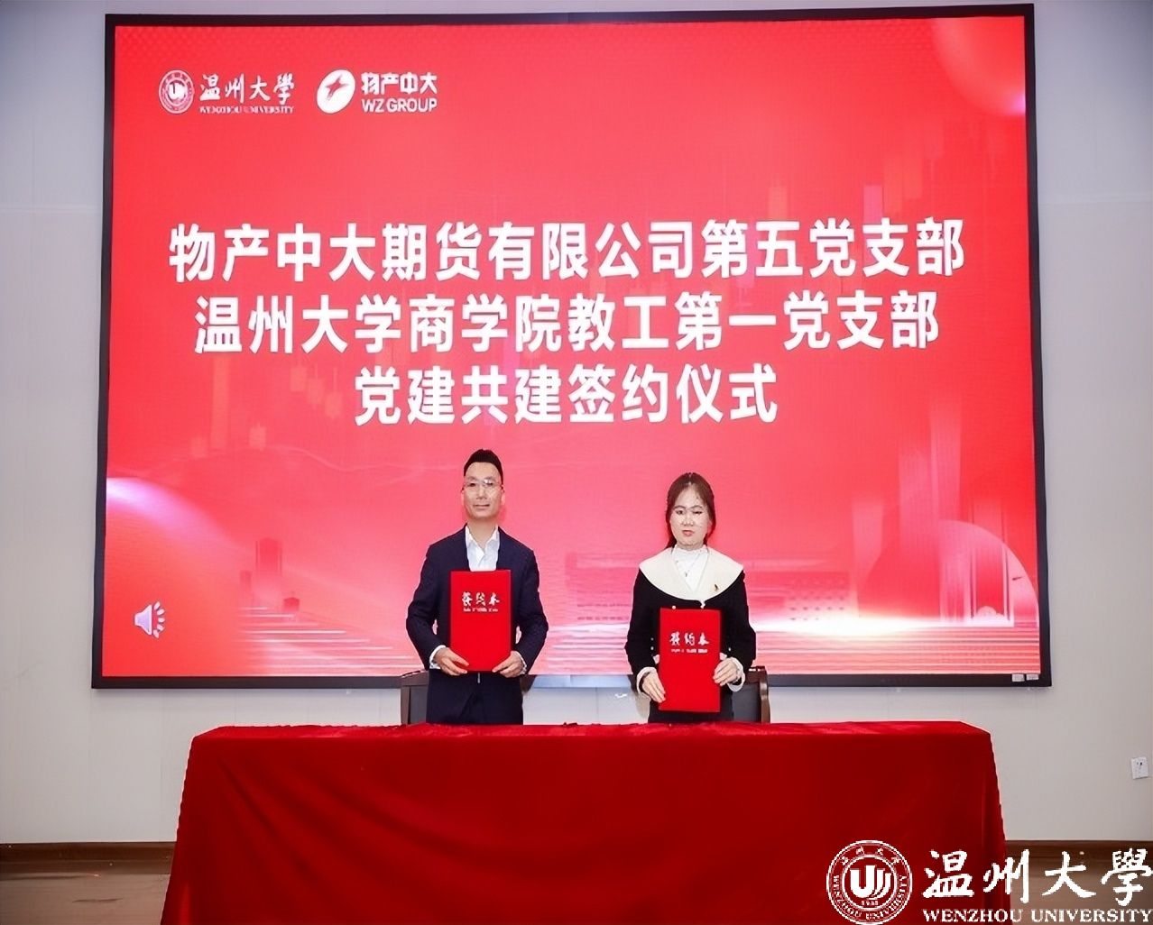 第一党支部(全国样板党支部)也与物产中大(期货公司)签署了党建共建协议。该中心的成立标志着浙江省期货领域产学研合作迈出重要一步,旨在推动期货行业理论创新与实践应用深度融合,为区域经济发展注入新动能。温州市人民政府副秘书长沈显克、平阳县副县长朱邦丰、物产中大期货有限公司董事长朱彤、温州大学副校长王军等领导及各界嘉宾出席活动。