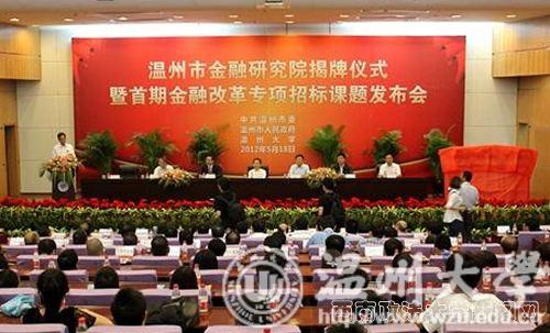 2012年3月,温州成为国内首家国家级金融综合改革试验区,要使金融综合改革能够尽快地“出模式、出经验、好应用、能推广”,金融人才的需求变得愈加强烈,迫切需要高校研究机构与政府部门共同探索形成研究成果直接转化为政策和制度的绿色通道。因此,经温州市委、市政府批准,温州市金融研究院暨温州大学金融研究院于2012年5月18日成立。